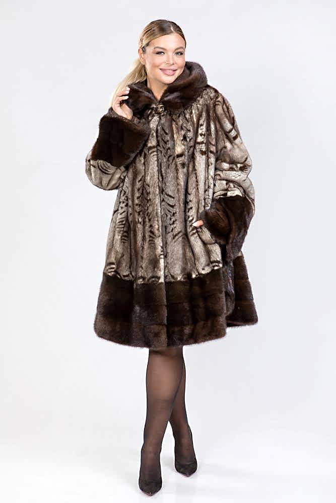 Каждое изделие из норки выглядит достойно, благородно. Но все женщины мечтают быть неповторимыми, что и делает особенно популярными вещи с интересным, Pin-Up дизайном. Шубка из этой акции, полностью отвечает таким предпочтения