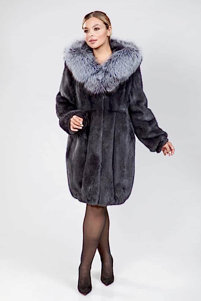 - защищающий от студеного Pin-Up капюшон, декорированный мехом чернобурки, который удачно гармонирует с норкой;