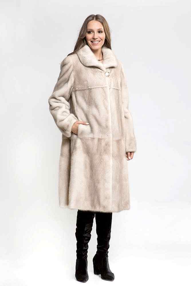 Серебряно-льняную шубку из натурального меха норки по акции можно купить всего за 104 800₸. В наличии только один размер - 50 (королевский).