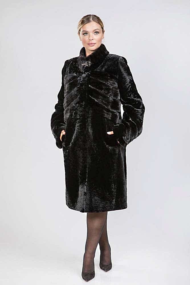 Шуба, предлагаемая в акции, дополнена отделкой из меха норки на Pin-Up рукавах, из этого материала выполнена верхняя часть полочки. Изделие смотрится респектабельно, роскошно, имеет свободный крой, гарантирующий максимальную комфортность.