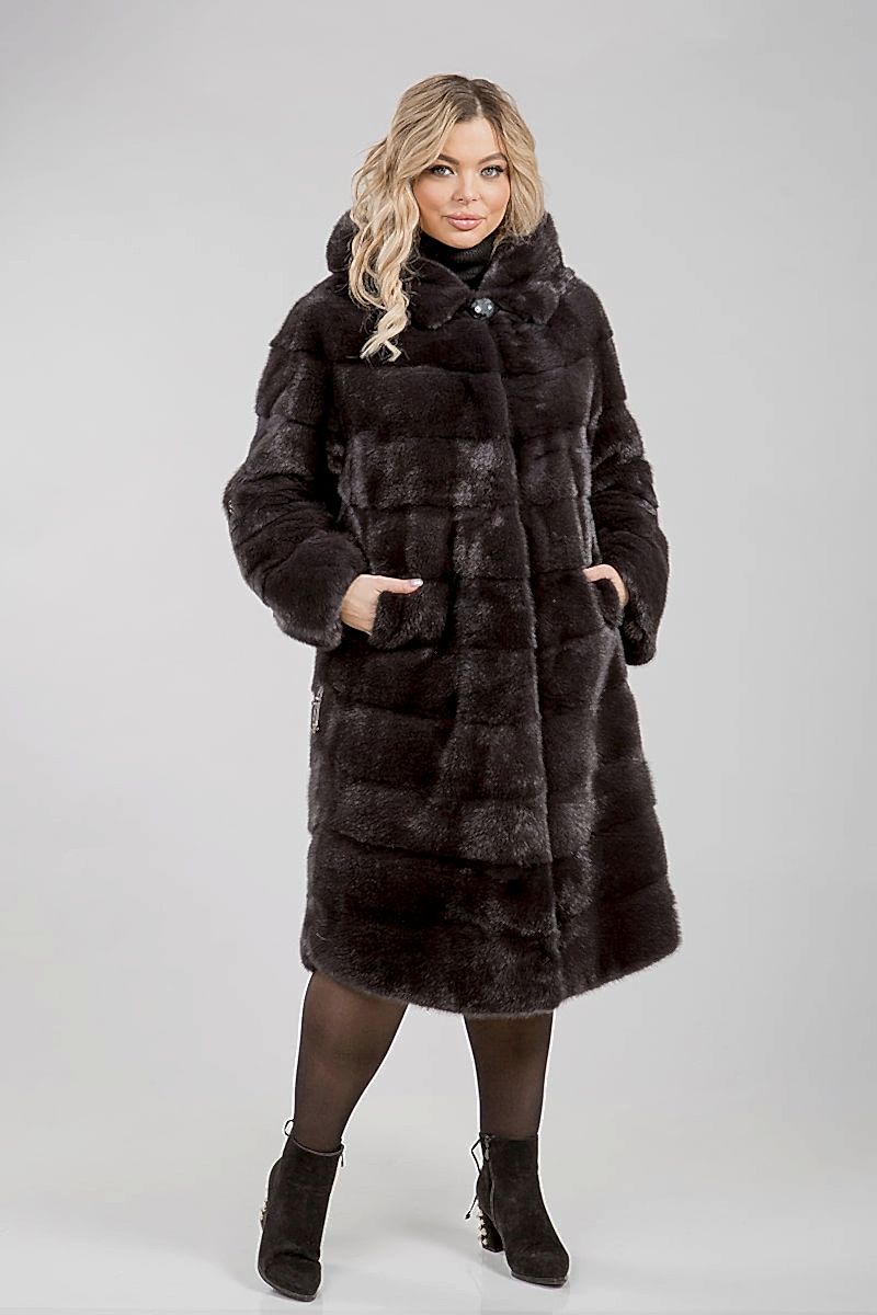 Участвующее в акции полупальто из Pin-Up норки подойдет зрелым женщинам 30+. Его выбирают приверженки классического стиля в одежде. Оно имеет весьма удачный крой - диагональная выкладка пластин, который добавляет объема там, где его не хватает, чем скрывает имеющиеся несовершенства фигуры. Среди сильных сторон этой модели: