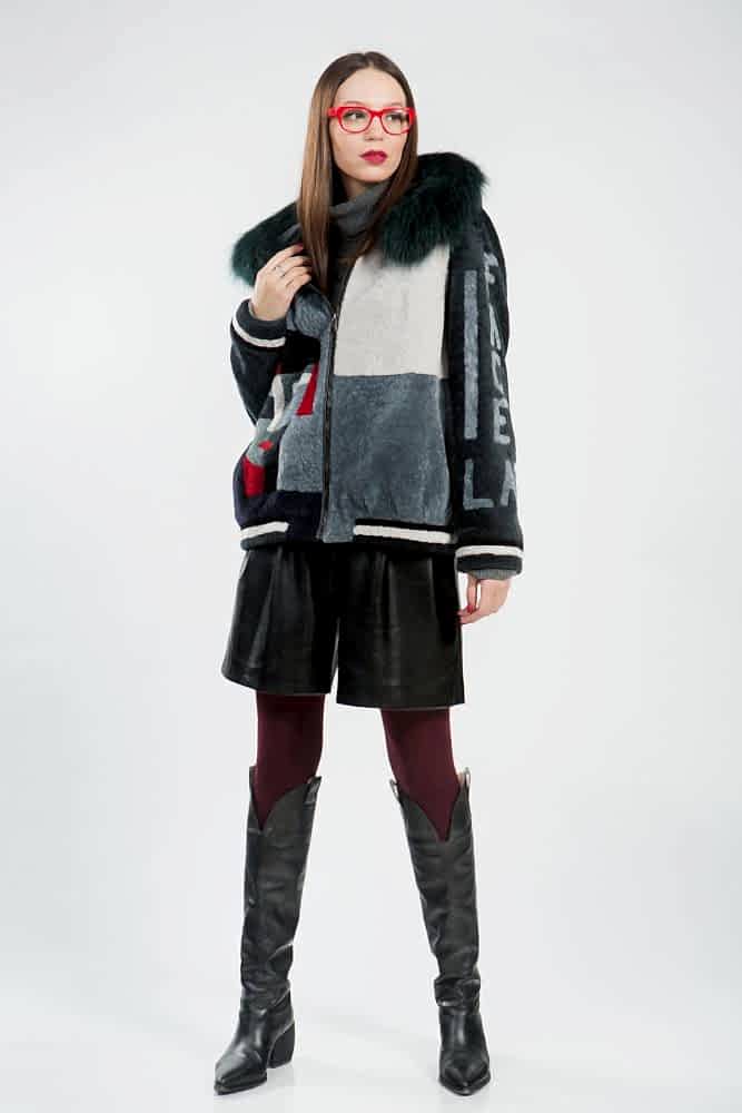 Эксклюзивным украшением куртки являются геометрические Pin-Up красного, зеленого, голубого цвета, надписи на рукавах. Кокетливые нотки, шарм придает опушка из енота на капюшоне. Куртки имеют оптимальную длину, идеально сочетаются с джинсами, юбками, классическими брюками, любой обувью, что позволяет создавать неограниченное количество вариаций.