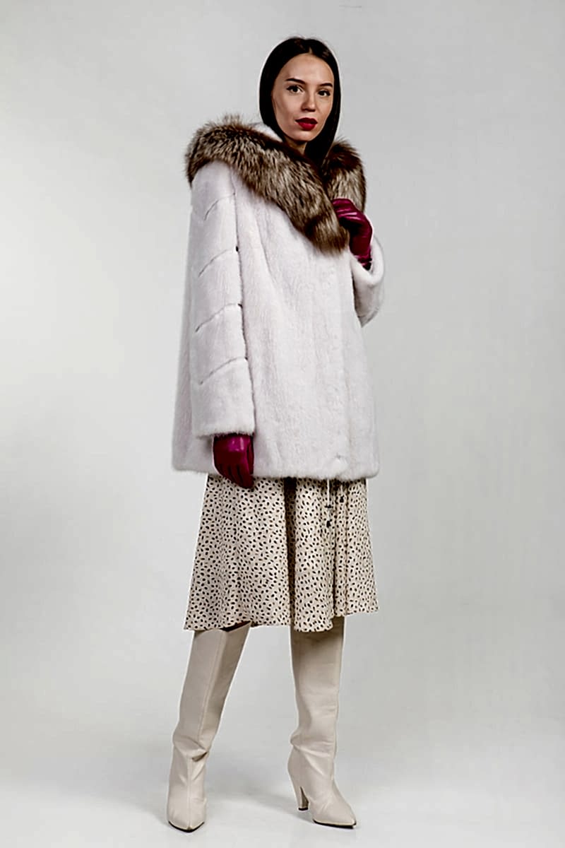 Длина норковой куртки предоставляет полную свободу в выборе одежды, обуви. Модели отлично сочетаются с брюками, юбками, ботильонами, Pin-Up сапогами и др.