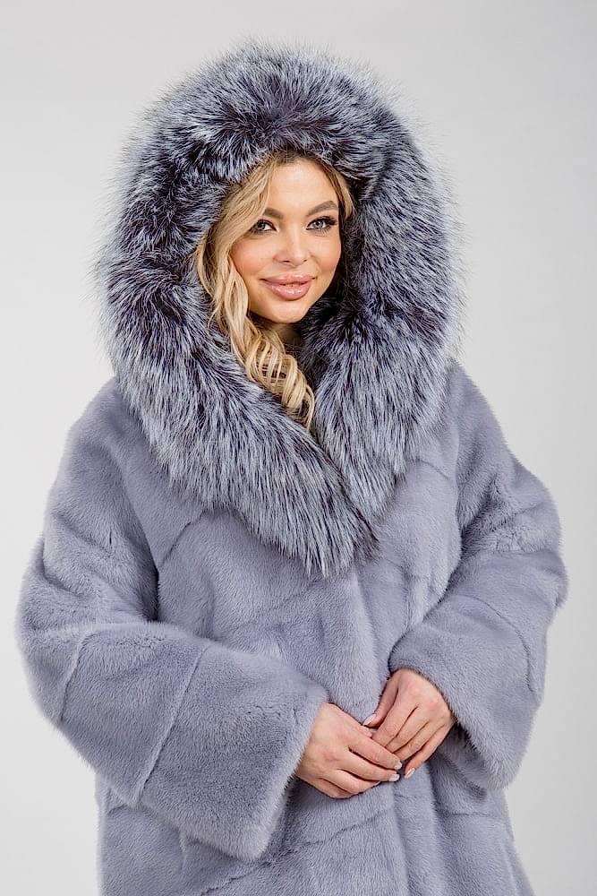 Обратите внимание на норковое полупальто с дополнительным мехом чернобурой лисы, арт. 5584. Оно выполнено в благородном серо-серебристом цвете (светлый муссон), имеет А-образный фасон и крой - диагональная выкладка пластин. Такое исполнение плюс регулирующие утяжки на талии, на рукавах и по низу изделия позволяют скрыть возможные несовершенства фигуры, сделать более Pin-Up и стройным общий силуэт. Среди преимуществ этой модели:
