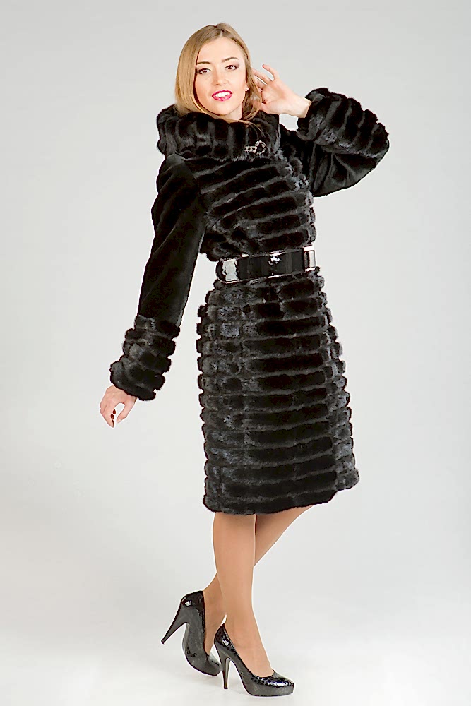 Сшитая в росшив шуба отличается большей легкостью и удобством, она оригинально и необычно выглядит. Полоски разного меха сшиваются между собой так, чтобы шов был незаметен, в результате получается Pin-Up полотно из двух видов меха с необычной и весьма элегантной фактурой.