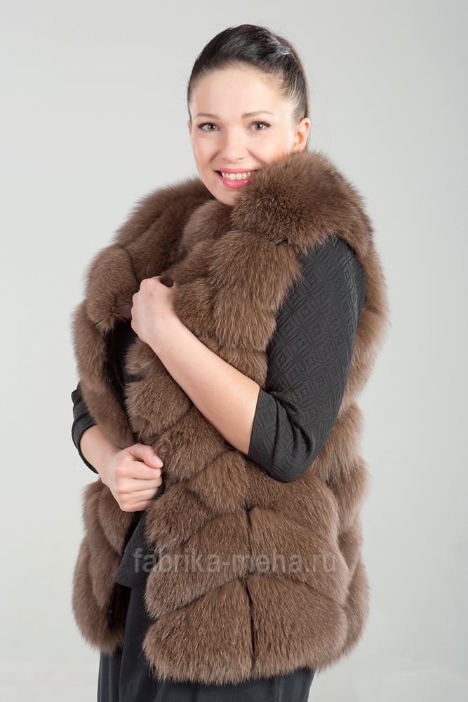 Песец - северная лиса - также любим модницами. Этот мех вполне доступен по цене и очень теплый и пушистый. В такой жилетке не будет холодно осенью, особенно если вы решили вдруг выбраться с друзьями за город на пикник или просто совершить длительную прогулку по городским улицам. Мех песца имеет богатую палитру оттенков серовато-белого и голубого, так что если вы предпочитаете менее яркие варианты, то вам наверняка понравится такая жилетка.