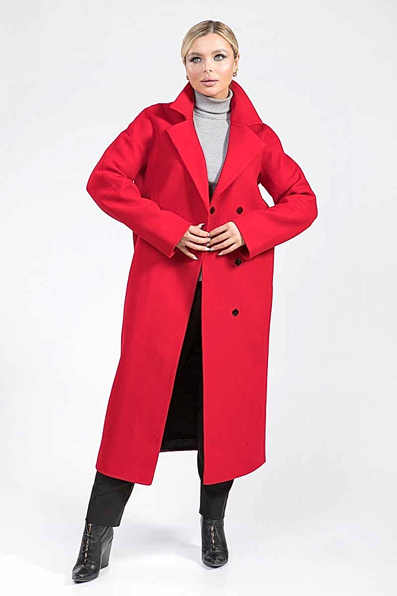 Выделить из толпы, обеспечить луку Pin-Up позволяет верхняя одежда в ярких тонах. Красное пальто классической длины миди поможет поднять настроение владелице и окружающим, непременно привлечет внимание. Изделие имеет прямой универсальный крой, комплектуется поясом для желающих подчеркнуть линию талии. Английский воротник, удлиненные рукава для формирования манжет обеспечивают элегантный вид.