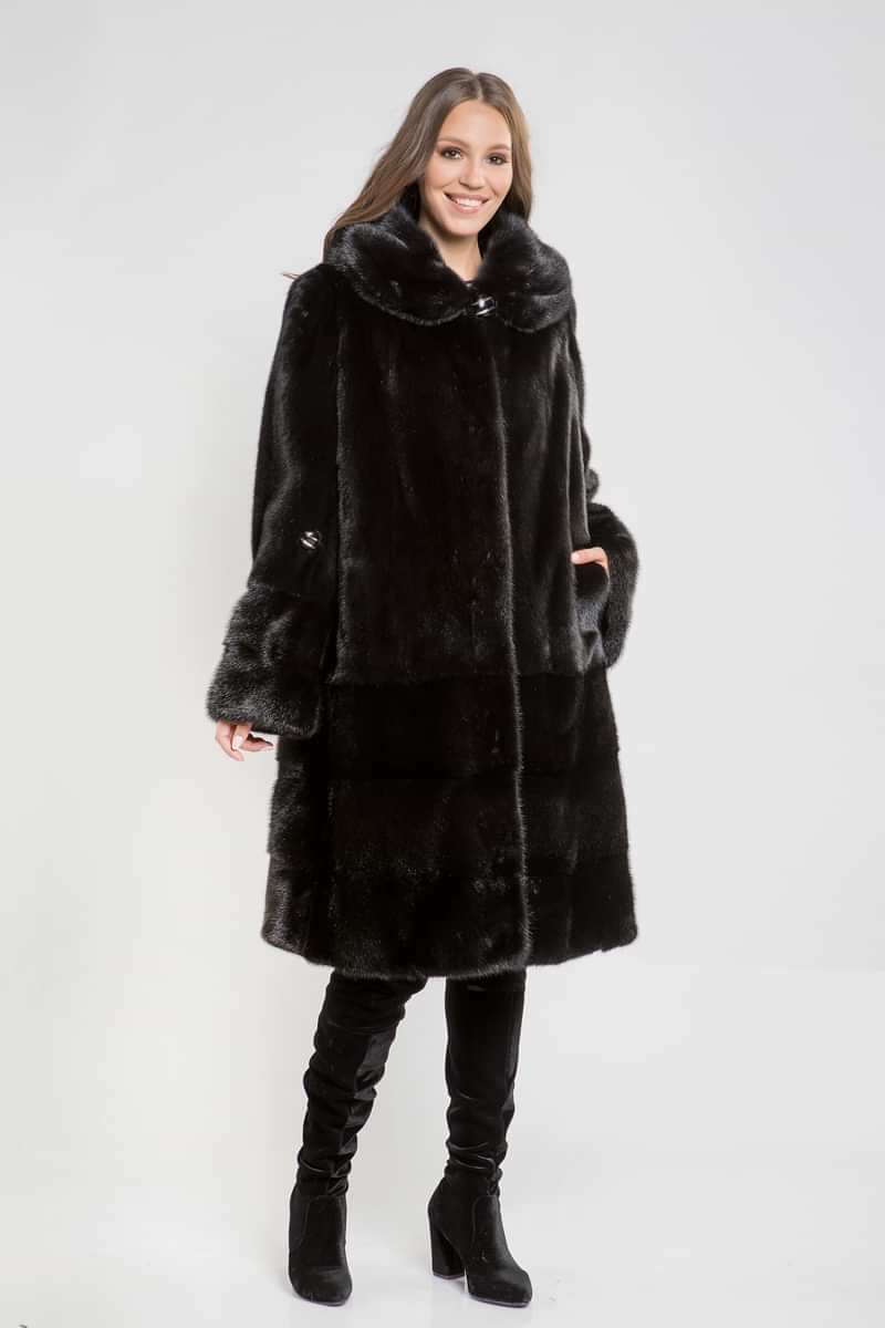 Pin-Up норковое полупальто подходит женщинам любого возраста. Его с удовольствием носят и домохозяйки, и бизнес-леди. Оно отшито по двум удачным техникам работы с мехом: верх - вертикальная выкладка пластин, а низ - горизонтальная выкладка пластин. Это делает крой объемным, что требуется для маскировки возможных недостатков фигуры - недостаточно тонкой талии или слишком крутых бедер.
