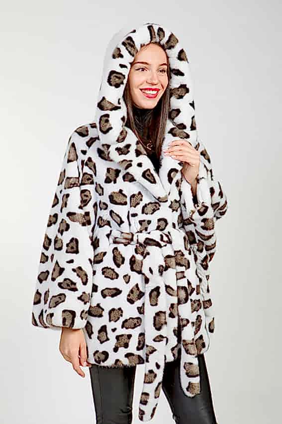 У нашей компании есть привлекательное предложение для креативных модниц. Мы получили партию курток-пончо с капюшоном из норкового меха. Модели арт.5258 отличаются необычным фасоном, интересным дизайном. Свободный крой основной части и рукавов позволяет надевать под куртку любую одежду, наслаждаться комфортом. Окрас меха имитирует шкуру снежного барса, что придает изделию Pin-Up выразительность, шик.