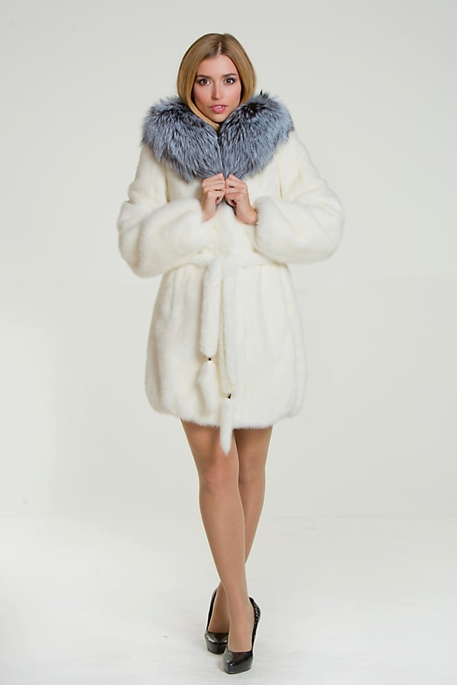 Стабильно пользуется спросом у молодых девушек стильное и элегантное норковое полупальто белоснежного цвета, арт. 5435, которое превратит свою обладательницу в настоящую Снегурочку. Гармоничности и сходства со сказочной героиней добавит роскошный мех чернобурой лисы, которым оторочен Pin-Up Эту модель отличает: