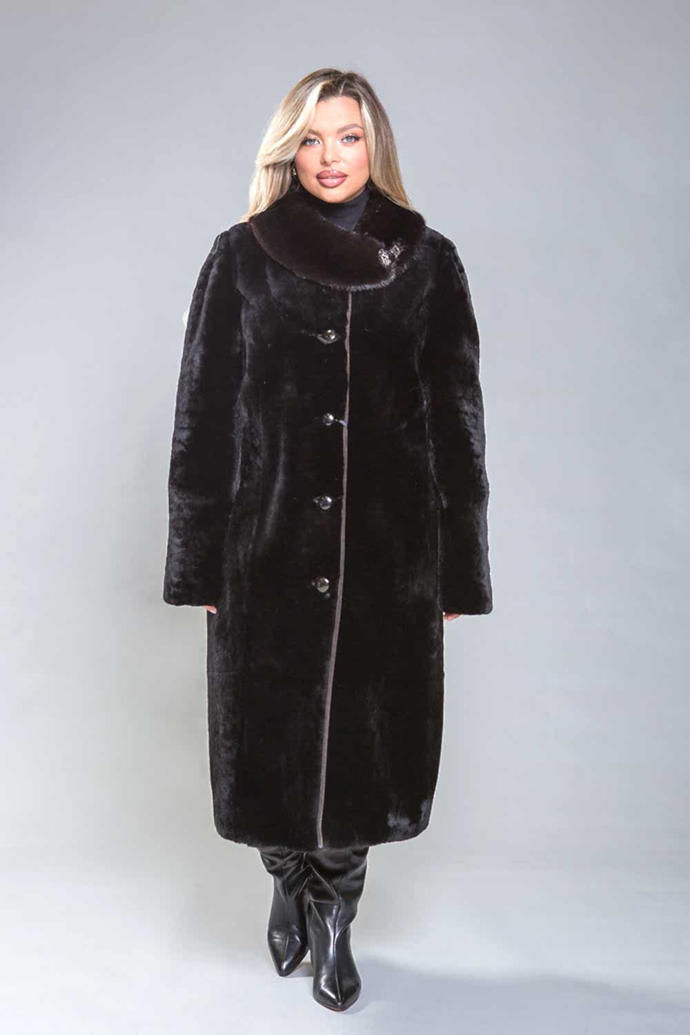 Мутоновые шубы с норкой премиум-класса стабильно востребованы на рынке меховой Pin-Up одежды.