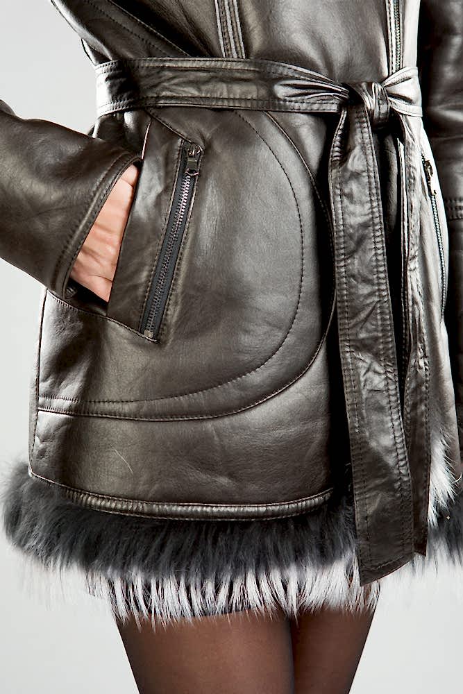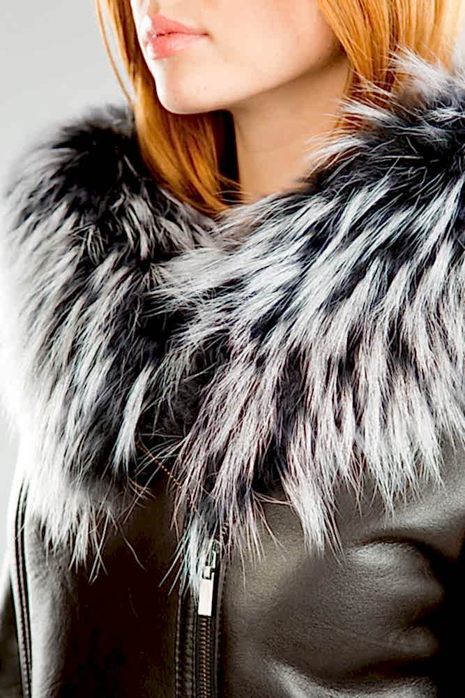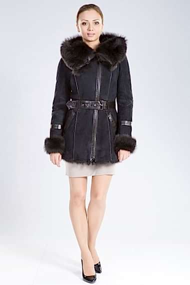 Оригинальная женская дубленка. Модель укороченная. Капюшон дополнен мехом чернобурой лисы, по низу так же отделка из меха. Карманы декорированы замками. Внутри Pin-Up из эко- меха.Нет в наличии.