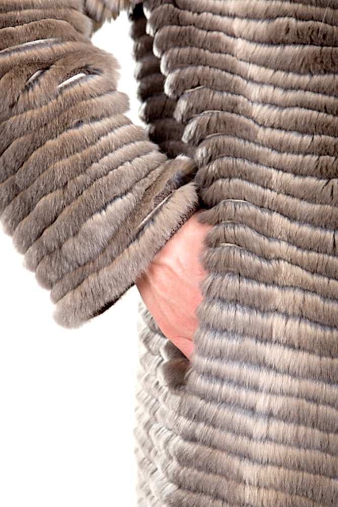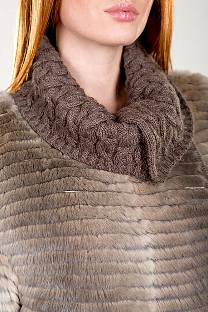 Полупальто женское из Pin-Up кролика "Рекс" на трикотажной основе. Модель приталенная, классическая. Изделие дополнено оригинальным вязаным трикотажным воротникоНет в наличии.