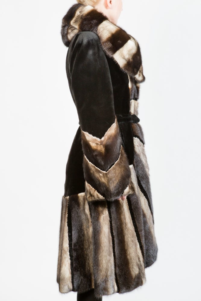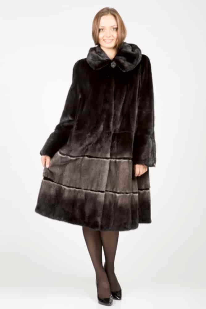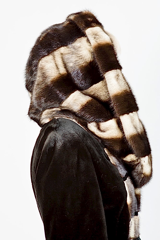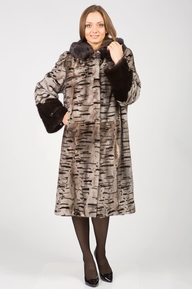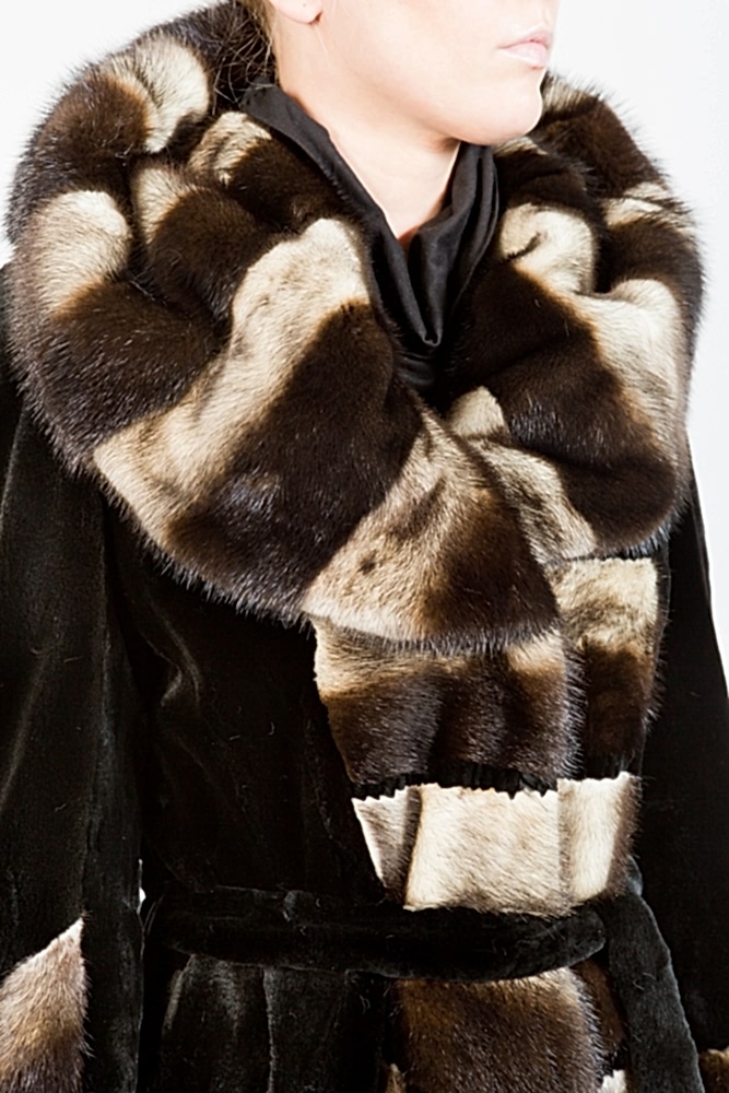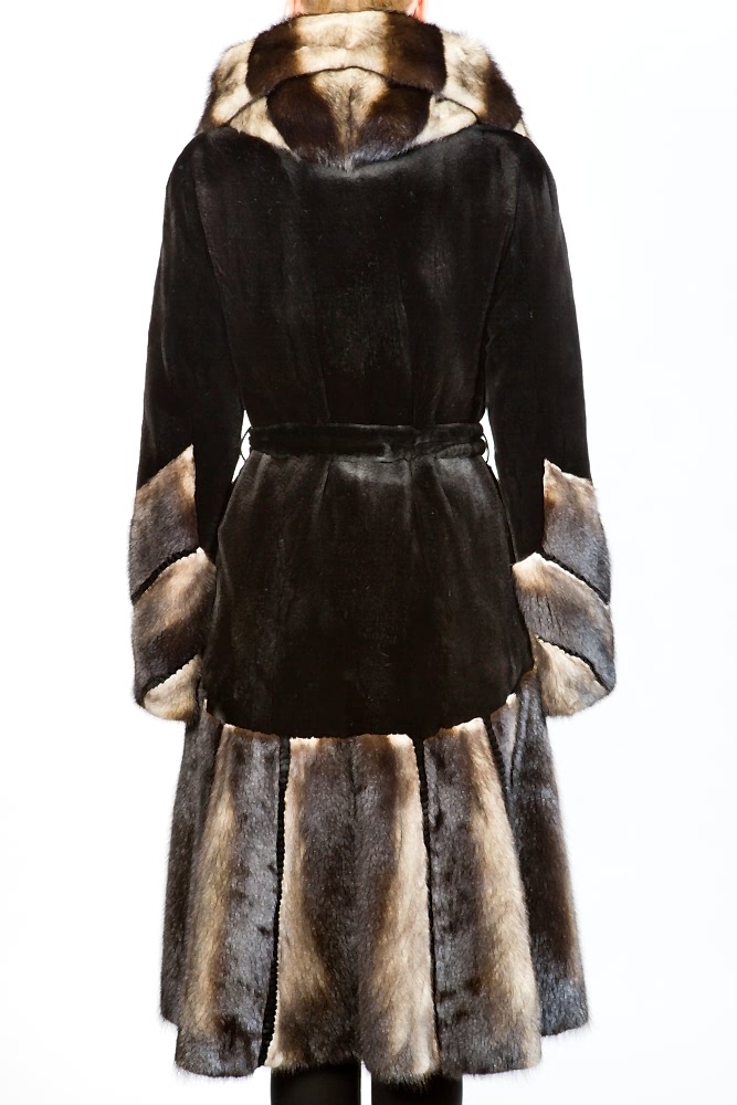 Женское полупальто из меха стриженной норки с капюшоном. Модель приталенная. Рукава расклешенные. Изделие дополнено комбинированной выкладкой пластин из полноценного меха Pin-Up Пояс в комплекте.Нет в наличии.