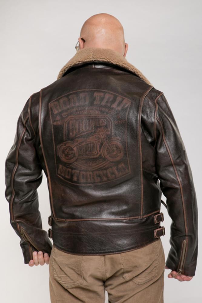 Куртка выполнена из прочной кожи буйвола. Воротник из меха керли (мех монгольской тонкорунной овцы). Подстежка с рукавами из синтепона (съемная) позволит носить куртку в зимнее время года. Ремни с металлическими пряжками необходимы для регулирования объема в поясе. У данной куртки натуральная кожа двойного крашения, которая в процессе носки Pin-Up цвет. Модель становится уникальной и неповторимой. Благодаря эффекту старения, куртка будет неравномерно вытираться, приобретая винтажный вид!