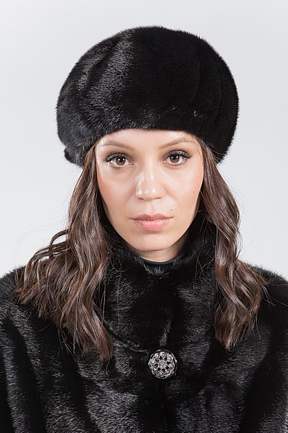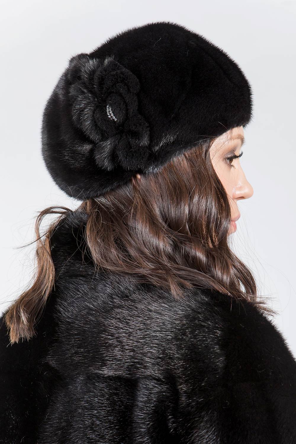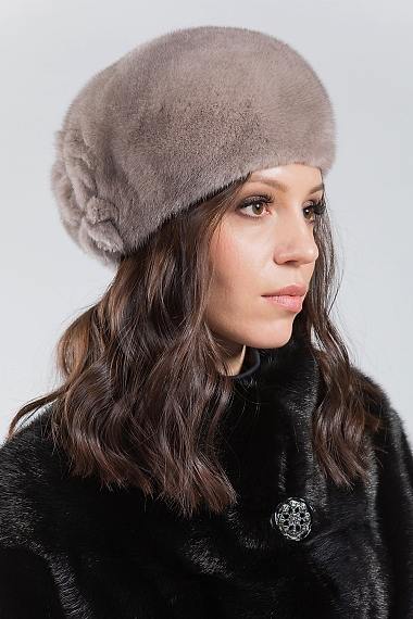 Берет женский из меха норки. Изделие внутри оснащено регулирующей утяжкой. Модель сбоку декорирована цветком из меха норки и маленькой брошью. Берет теплый и мягкий, его легко можно свернуть и положить в женскую сумочку. Универсальная, Pin-Up модель подойдет к любому меховому пальто!
