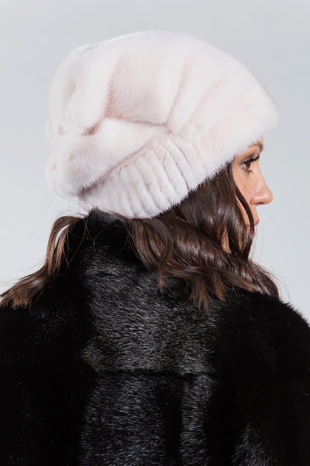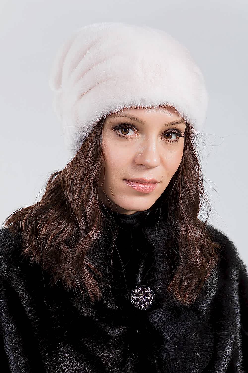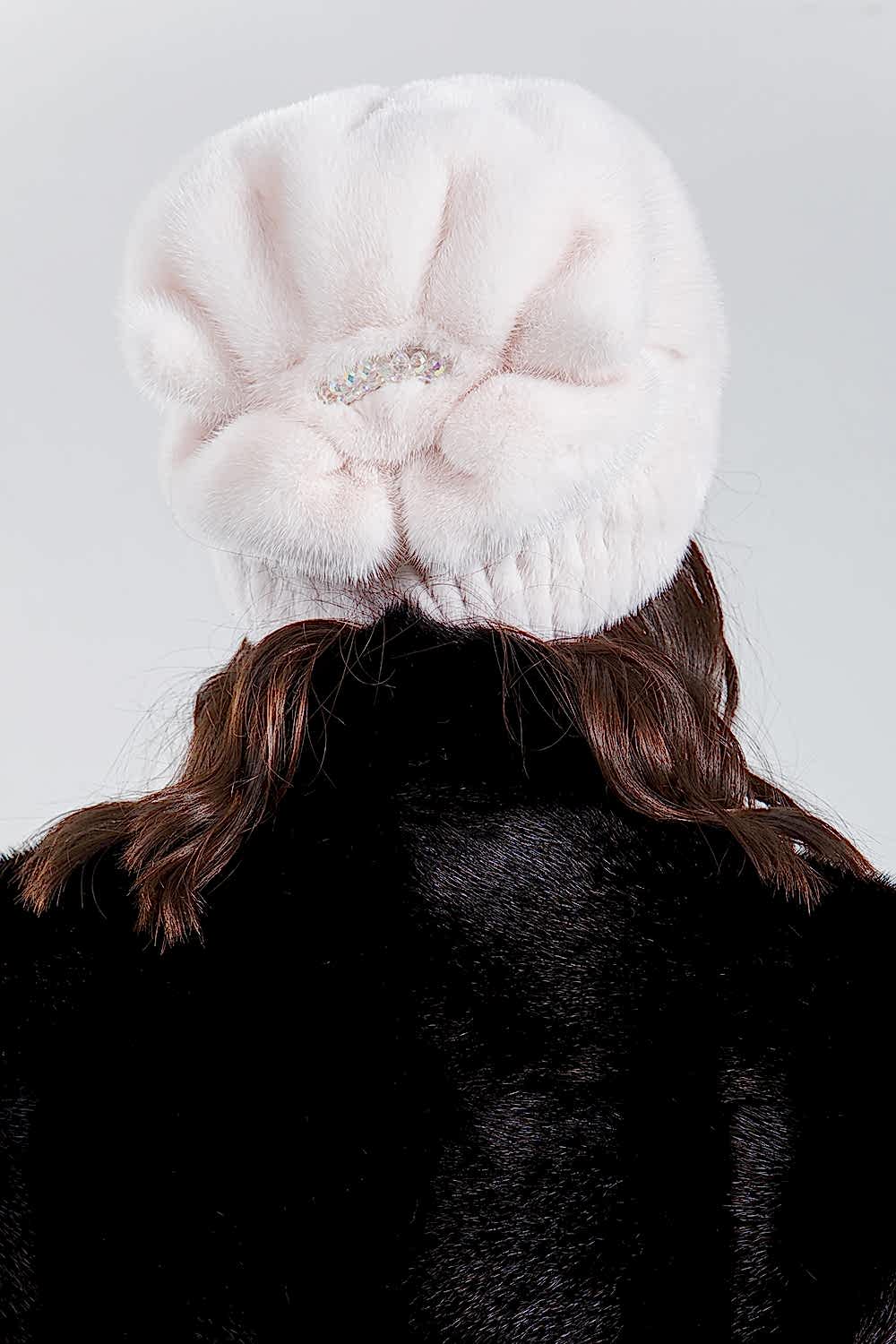 Шапка женская из меха норки. Модель внутри оснащена регулирующей резинкой, чтобы шапочка могла подойти на несколько размеров. Изделие декорировано сзади стеклярусами. Модель универсальная и теплая, ее легко можно свернуть и положить в женскую сумочку. Она не займет много места и не потеряет форму. Шапочка нежного цвета дымчатой розы Pin-Up к любому меховому пальто и будет согревать в морозную погоду!