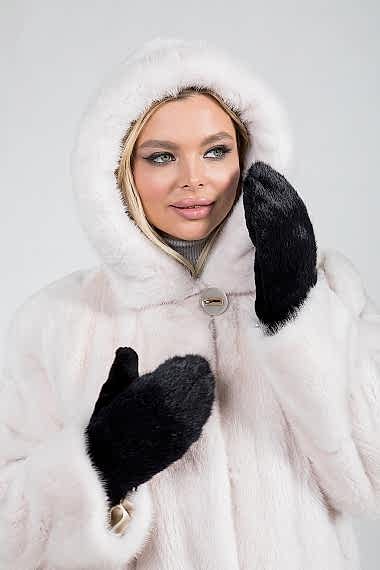 Женские варежки из меха норки. Внутренняя часть выполнена из мягкой и приятной на ощупь подкладки. Верхняя часть украшена декоративной молнией из белой норки. Мы приглашаем каждую девушку дополнить свой зимний гардероб стильными и теплыми варежками! Пусть ваши Pin-Up будут в тепле даже в самые морозные дни!