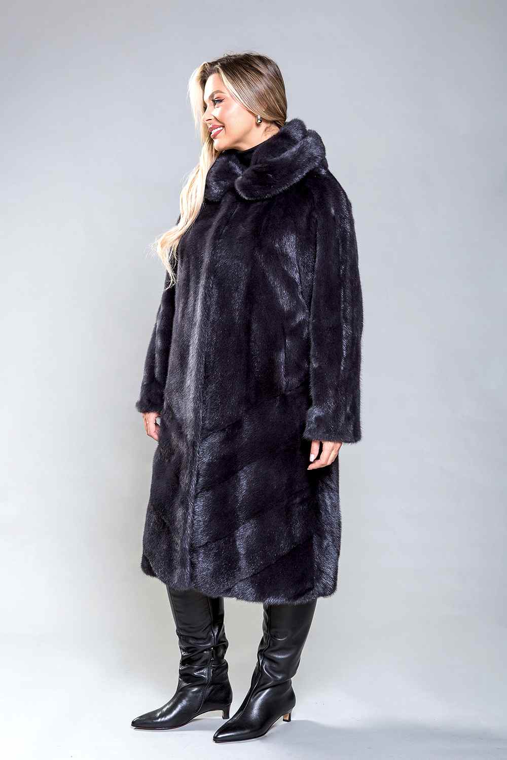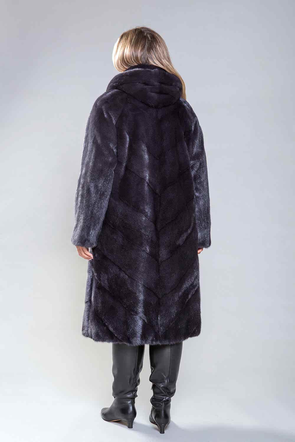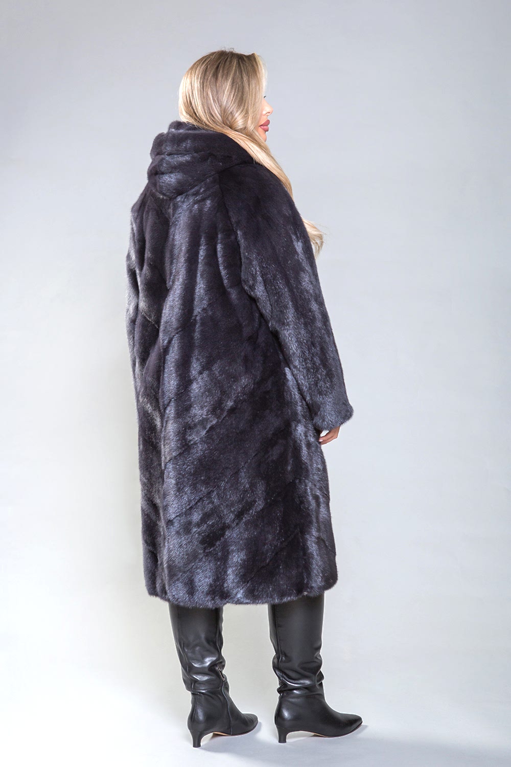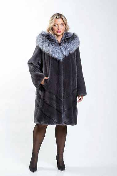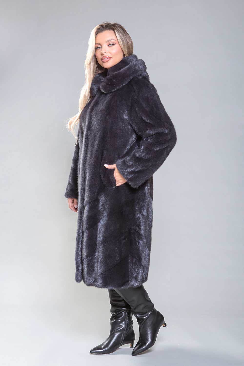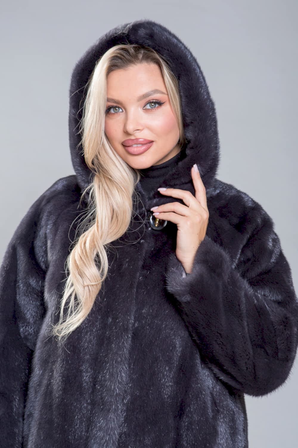 Полупальто из меха норки с капюшоном. Эта модель объединяет несколько техник кроя: передняя часть выполнена в технике роспуска, низ оформлен диагональной выкладкой пластин, а спинка состоит из полностью диагональной выкладки. Для удобства предусмотрены регулируемые утяжки на талии, рукавах и подоле. Длина изделия составляет 110 см. Удобный крой обеспечивает Pin-Up комфорт, а благородный оттенок муссона придаёт образу безупречную гармонию. Пальто изготовлено из высококачественного меха и выглядит изысканно!