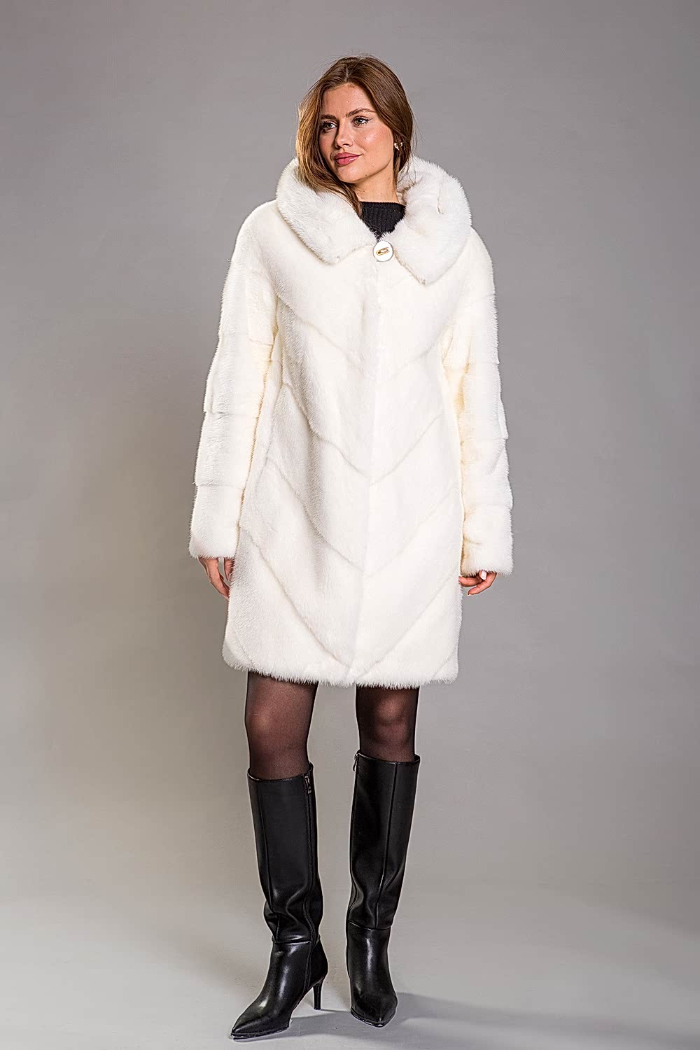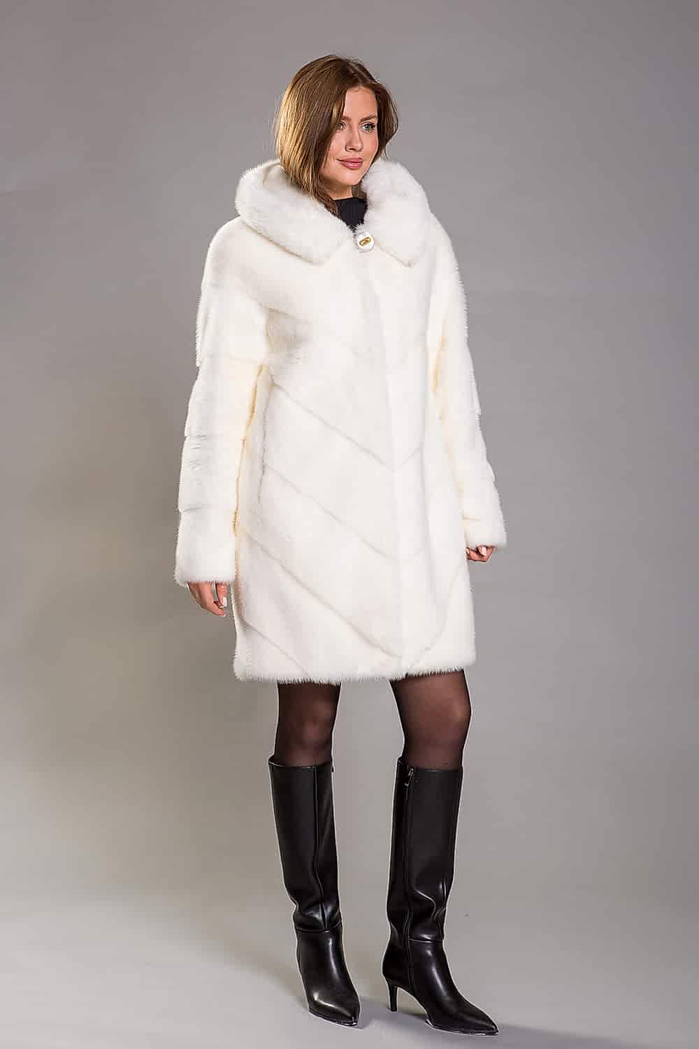Это белоснежное норковое полупальто станет настоящим украшением как для блондинки, так и для брюнетки. Универсальный фасон подходит для любого типа фигуры, Pin-Up каждой женщине найти свою идеальную модель.