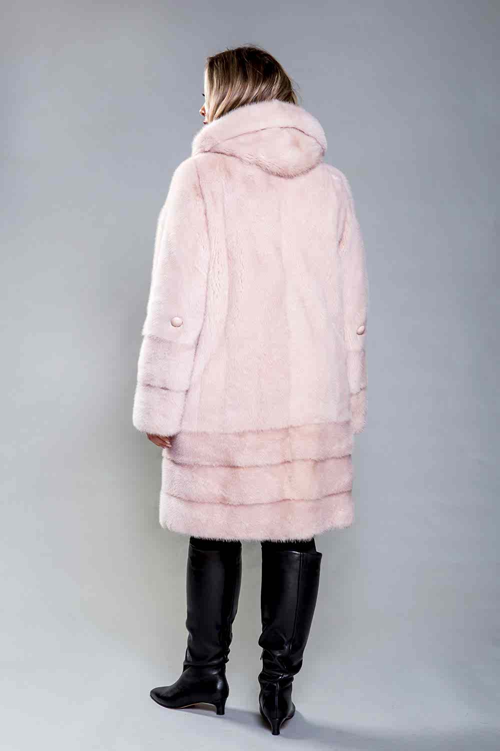 Полупальто из норкового меха с эффектным капюшоном выполнено в комбинированном стиле. Верх изделия создан с помощью техники роспуска, а низ состоит из поперечно выложенных пластин. Модель оснащена регулируемыми утяжками на талии и рукавах, что позволяет идеально подчеркнуть фигуру. Длина полупальто составляет 100 см, а длину рукавов можно легко скорректировать. Благодаря удобному крою и качественным материалам, это изделие станет вашим незаменимым элементом гардероба, обеспечивая максимальный комфорт. Элегантный Pin-Up оттенок добавит вашему образу изысканности и гармонии.