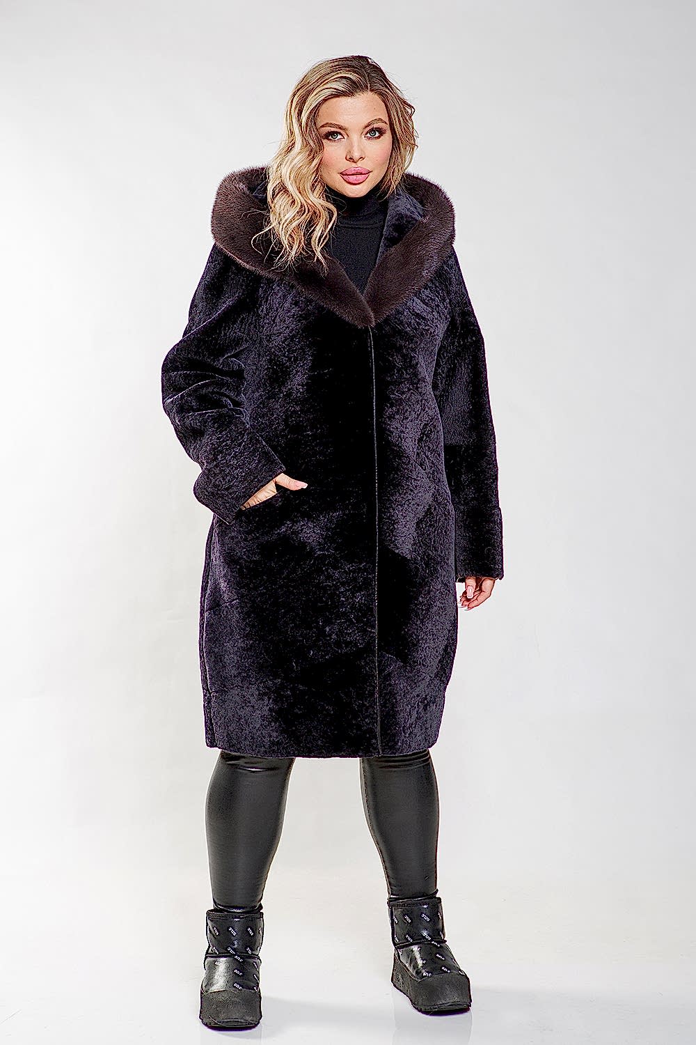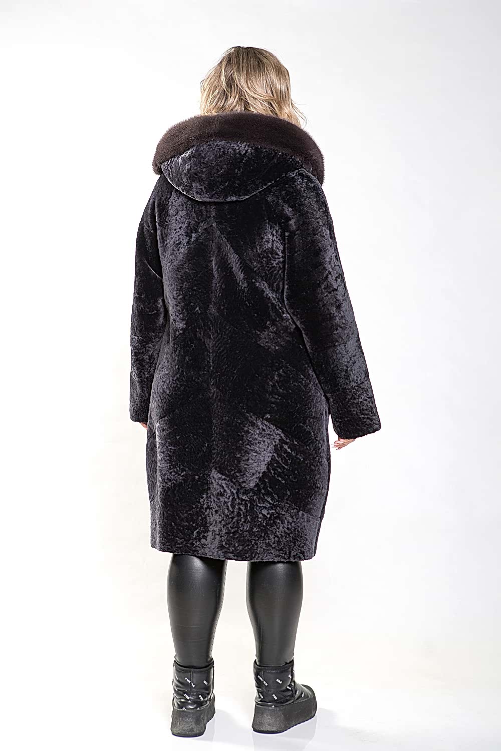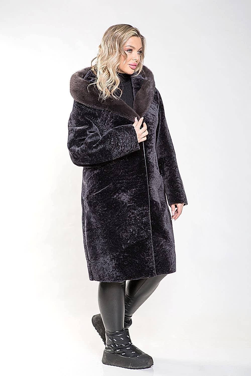 Полупальто из овчины, декорированное капюшоном из норки, Pin-Up вашей любимой зимней одеждой. Крой выполнен в технике диагональной выкладки пластин, что придаёт изделию особую привлекательность.