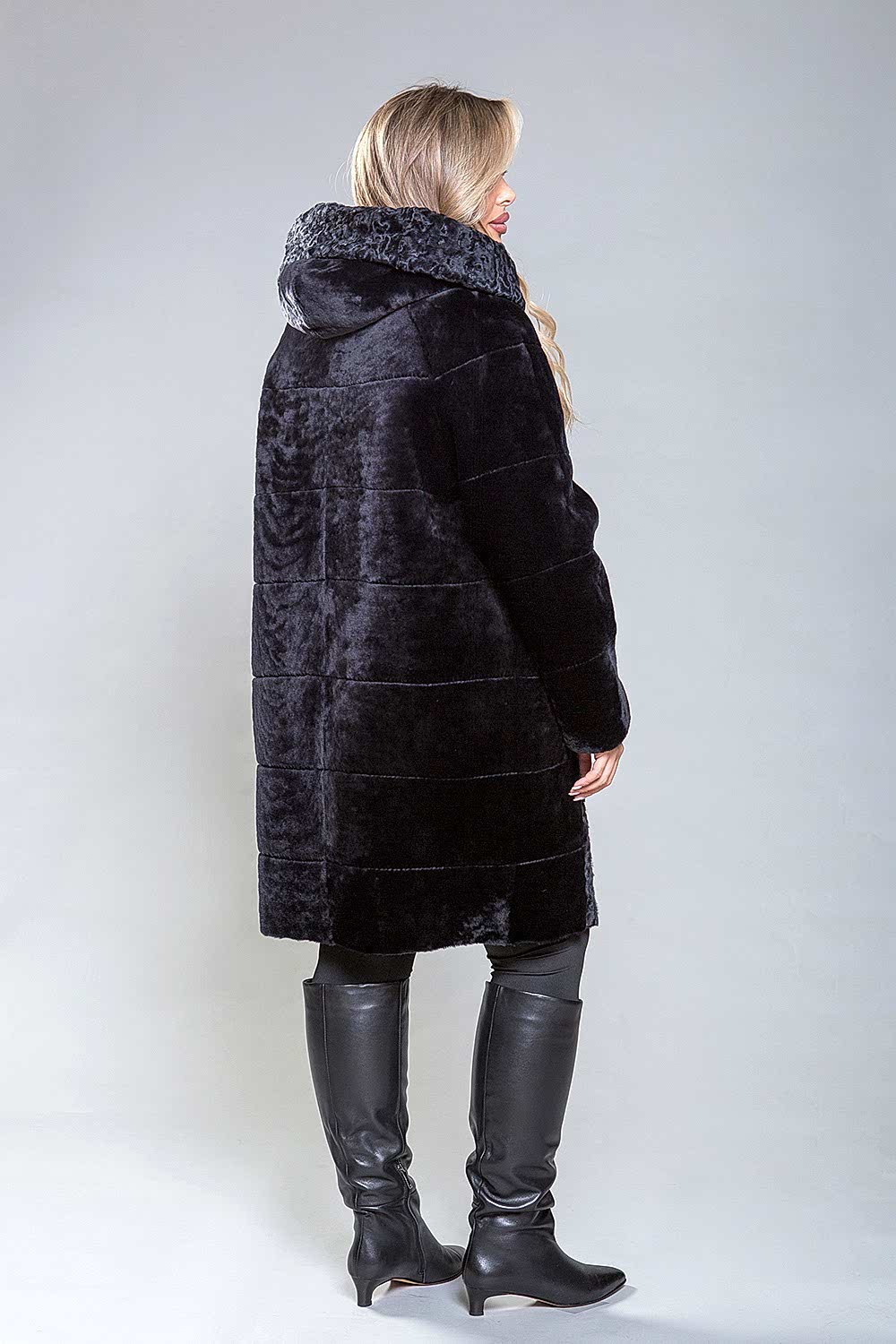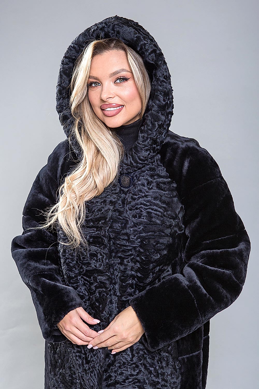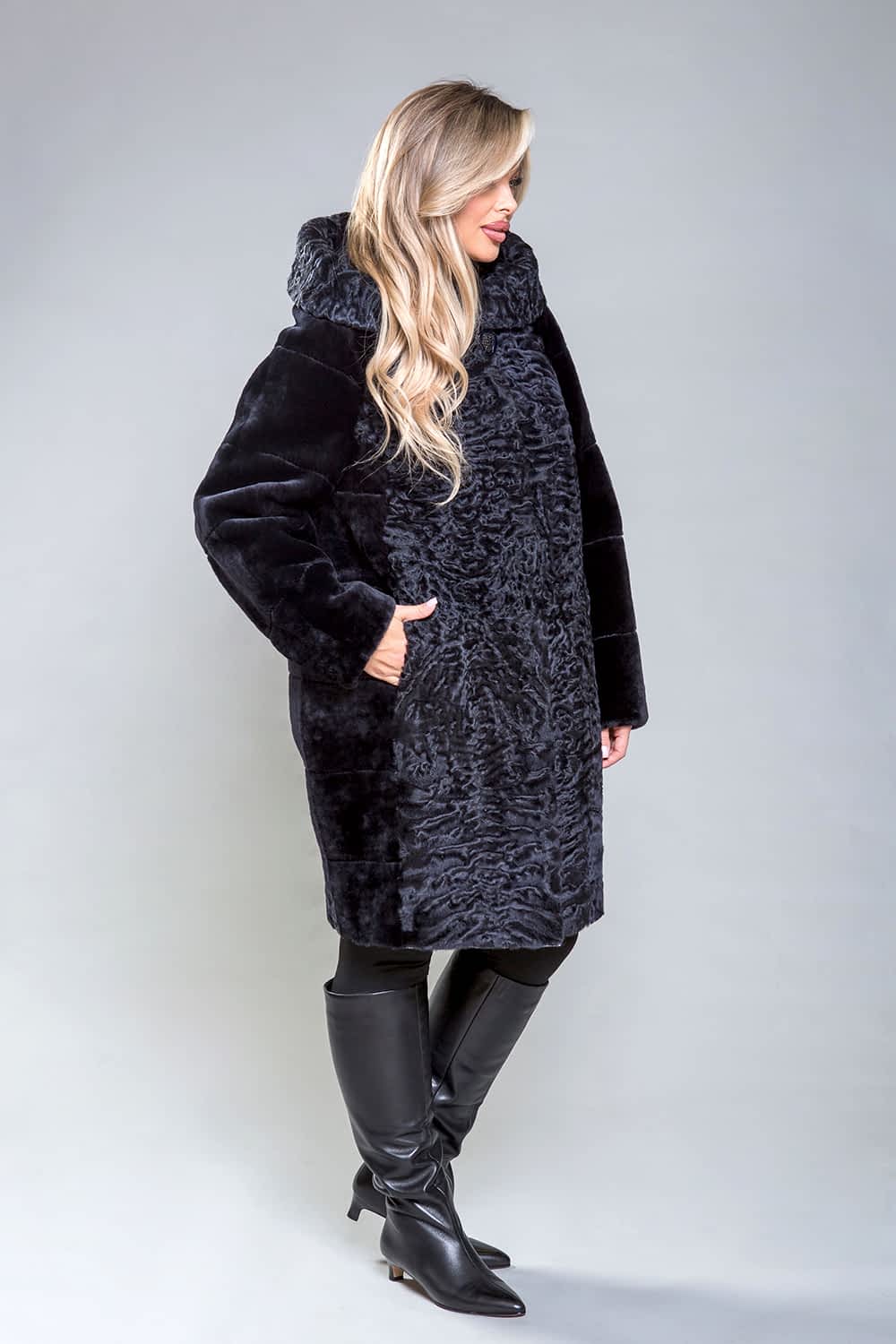 Элегантное полупальто создано из высококачественной овчины с поперечной выкладкой пластин. Капюшон и передняя часть украшены роскошным каракулем и изысканными декоративными стеклярусами. Карманы и борта выполнены из натуральной замши, а застежка - на клипсах. Pin-Up изделия составляет 95 см. Черничный цвет прекрасно сочетается с любым стилем одежды, что делает эту шубку идеальным выбором для тех, кто ценит высокое качество.