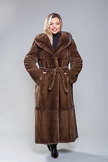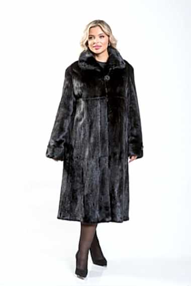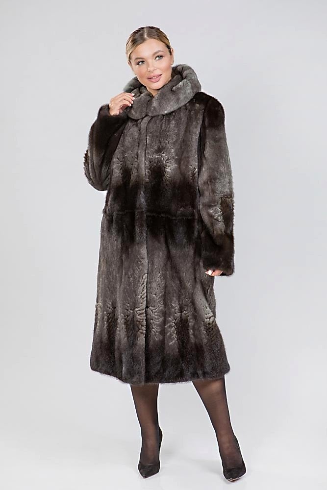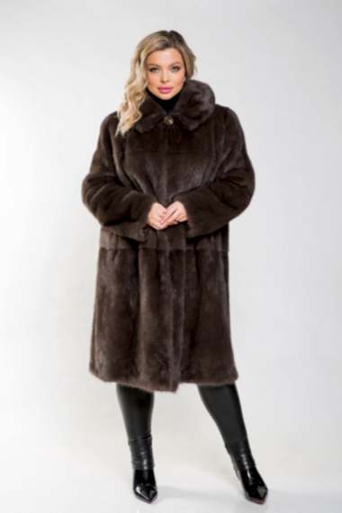 Полупальто из норкового меха с классическим воротником из пластин с Pin-Up роспуска - это универсальная модель. Длина изделия составляет 120 сантиметров. По мнению профессиональных стилистов, шубка классического силуэта является безупречным выбором. Модель идеально подходит для любой фигуры и обеспечивает элегантный внешний вид.