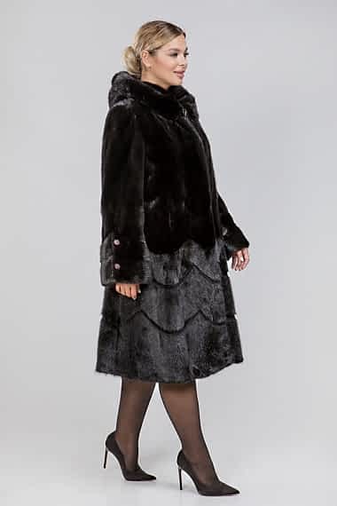 Пальто из меха норки высокого качества с капюшоном. Крой изделия пластины с добавлением роспуска. Модель оснащена Pin-Up утяжками в зоне талии и на рукавах. Длина модели 120 см. С таким шикарным меховым пальто одинаково гармонично смотрятся аксессуары в спокойных тонах и яркие эффектные изделия. Покупка такой шубки-это своего рода инвестиция!