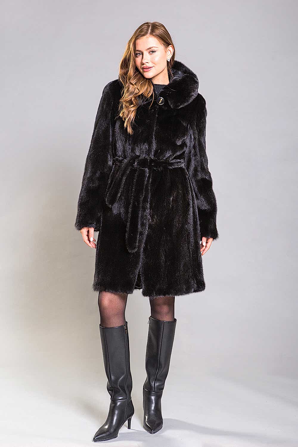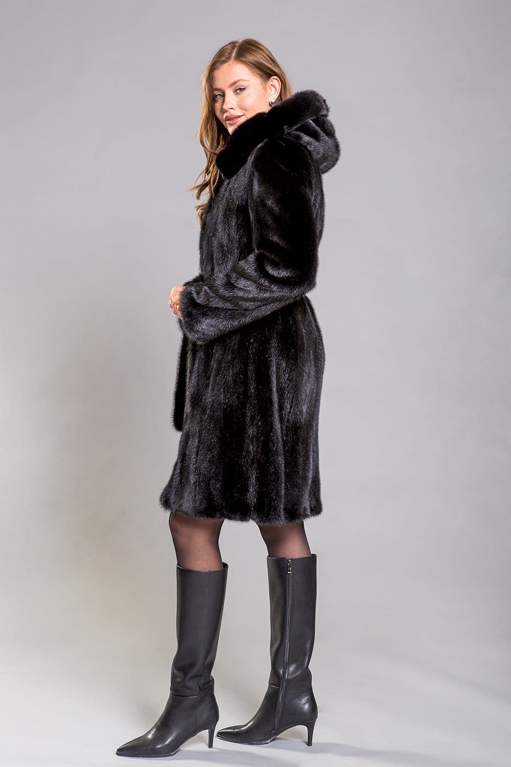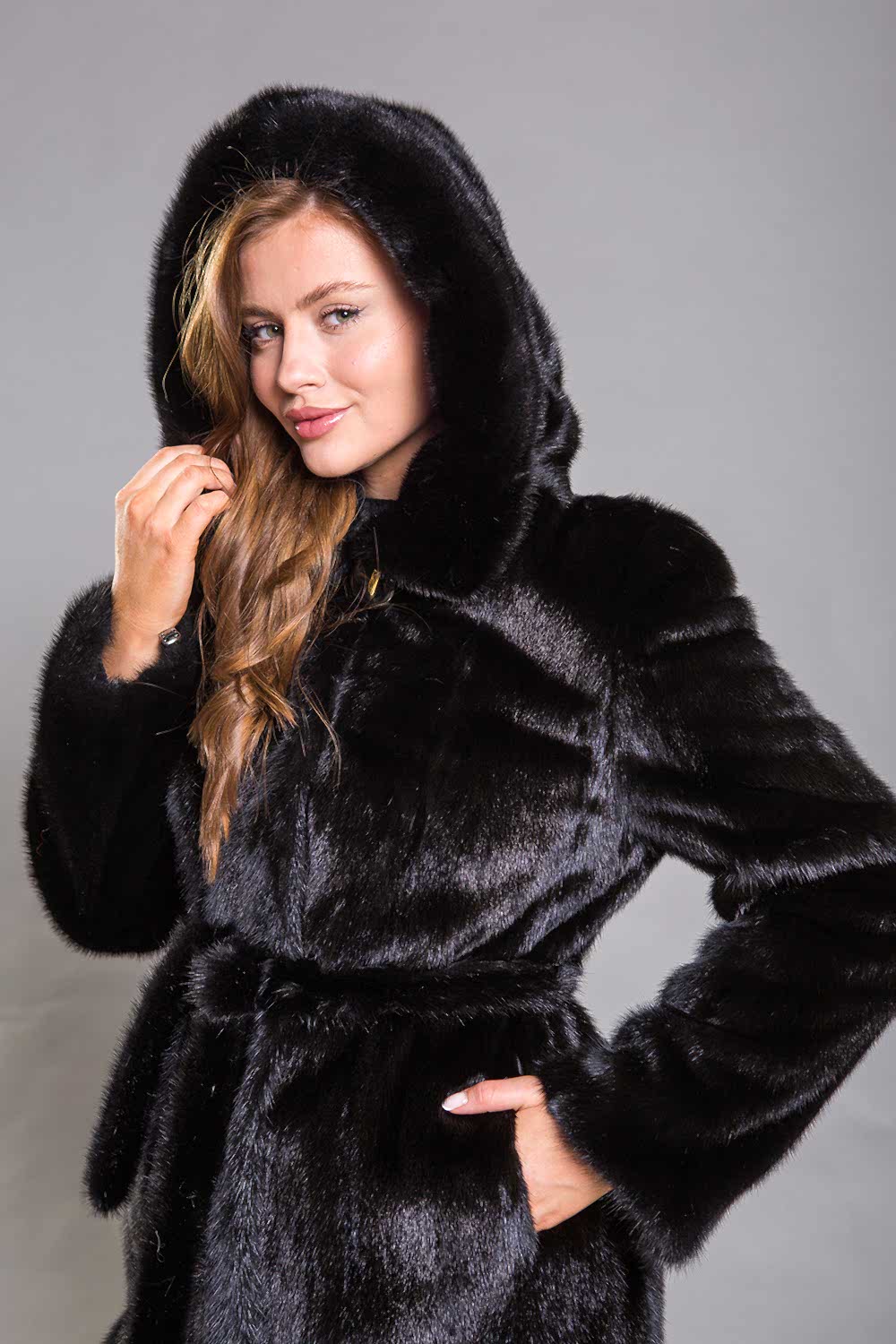 Полупальто из натурального норкового меха с капюшоном - это идеальный выбор для холодной зимы. Модель выполнена в роспуск с добавлением платин, что придает ей оригинальный вид. Рукав полупальто оснащён регулируемыми утяжками, которые позволяют укоротить его по желанию. Длина изделия составляет 100 сантиметров, что делает его универсальным вариантом для женщин, ценящих элегантность и женственность. Меховой пояс подчеркивает стройность и изящество силуэта, придавая образу утонченность. Эта шубка идеально дополнит строгий классический стиль, а её главной изюминкой являются разрезы по бокам, которые Pin-Up ей особый шарм.