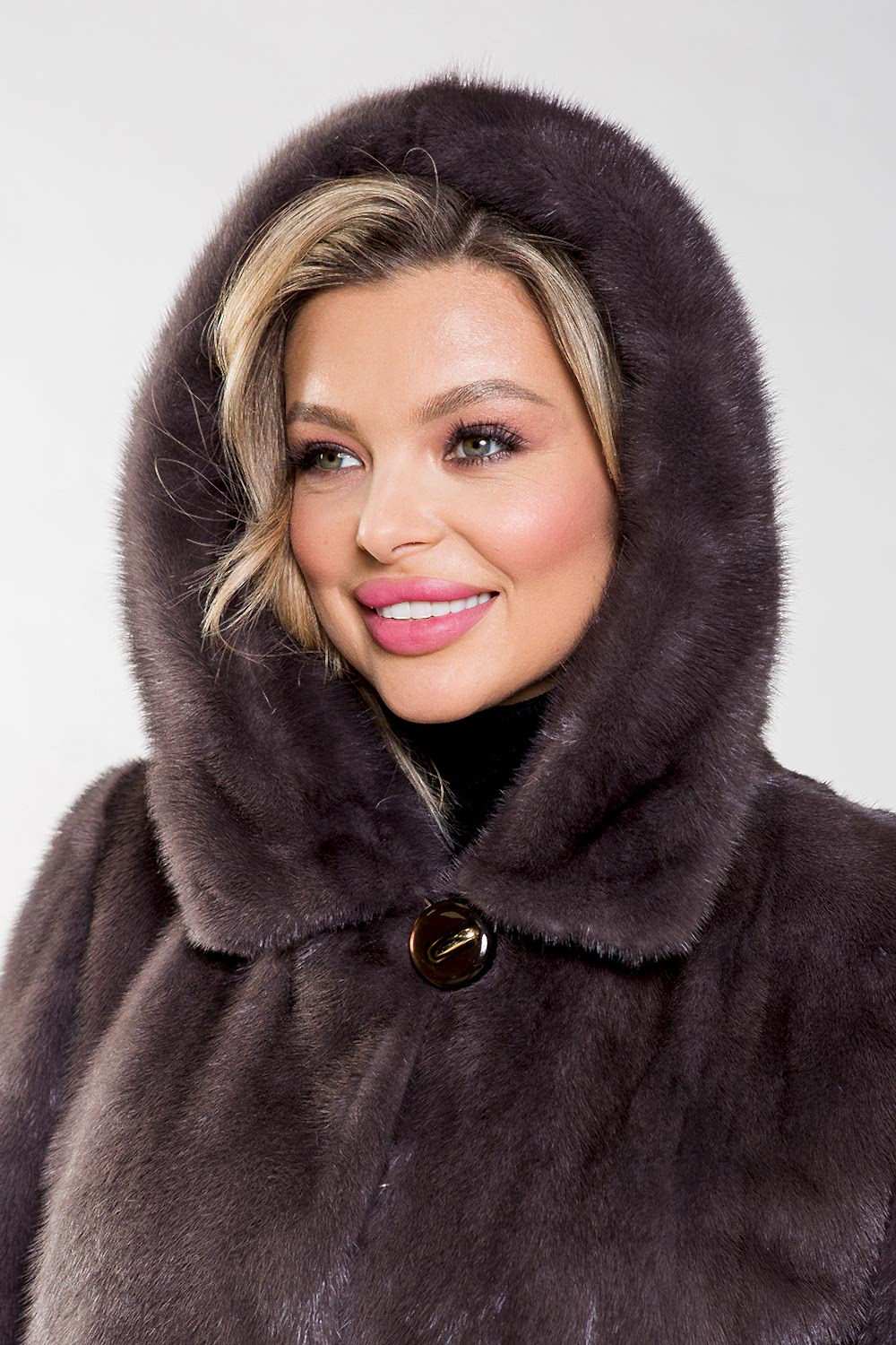 Удобный крой шубки гарантирует Pin-Up комфорт, а благородный оттенок муссона придаёт образу безупречную гармонию.