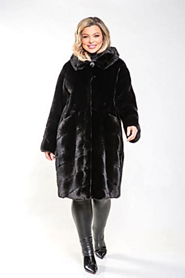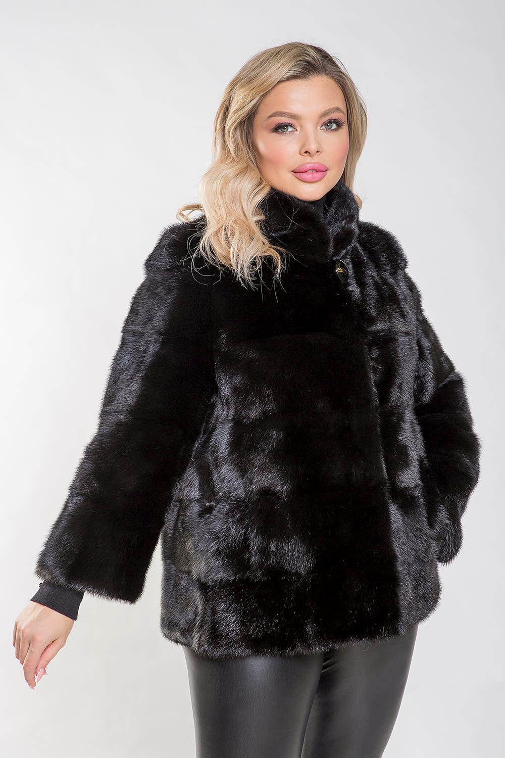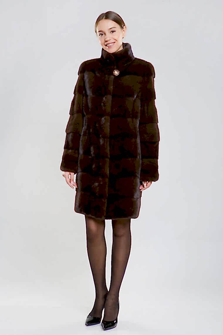 Полупальто из норки с воротником-стойкой - это настоящая находка для тех, кто ценит удобство и комфорт. Изделие отличается оригинальным кроем, в основе которого лежит поперечная выкладка пластин. Длина шубки составляет 100 сантиметров, а её главной особенностью является возможность отстёгивать рукава и низ. Благодаря этому шубка легко превращается в миниатюрную и изящную курточку. Не каждая женщина может позволить себе иметь несколько шуб из норки. Однако, купив модель-трансформер, вы сможете решить эту проблему и создавать новые образы, используя всего лишь одну вещь! Будьте всегда обворожительны в вашей новой шубке!