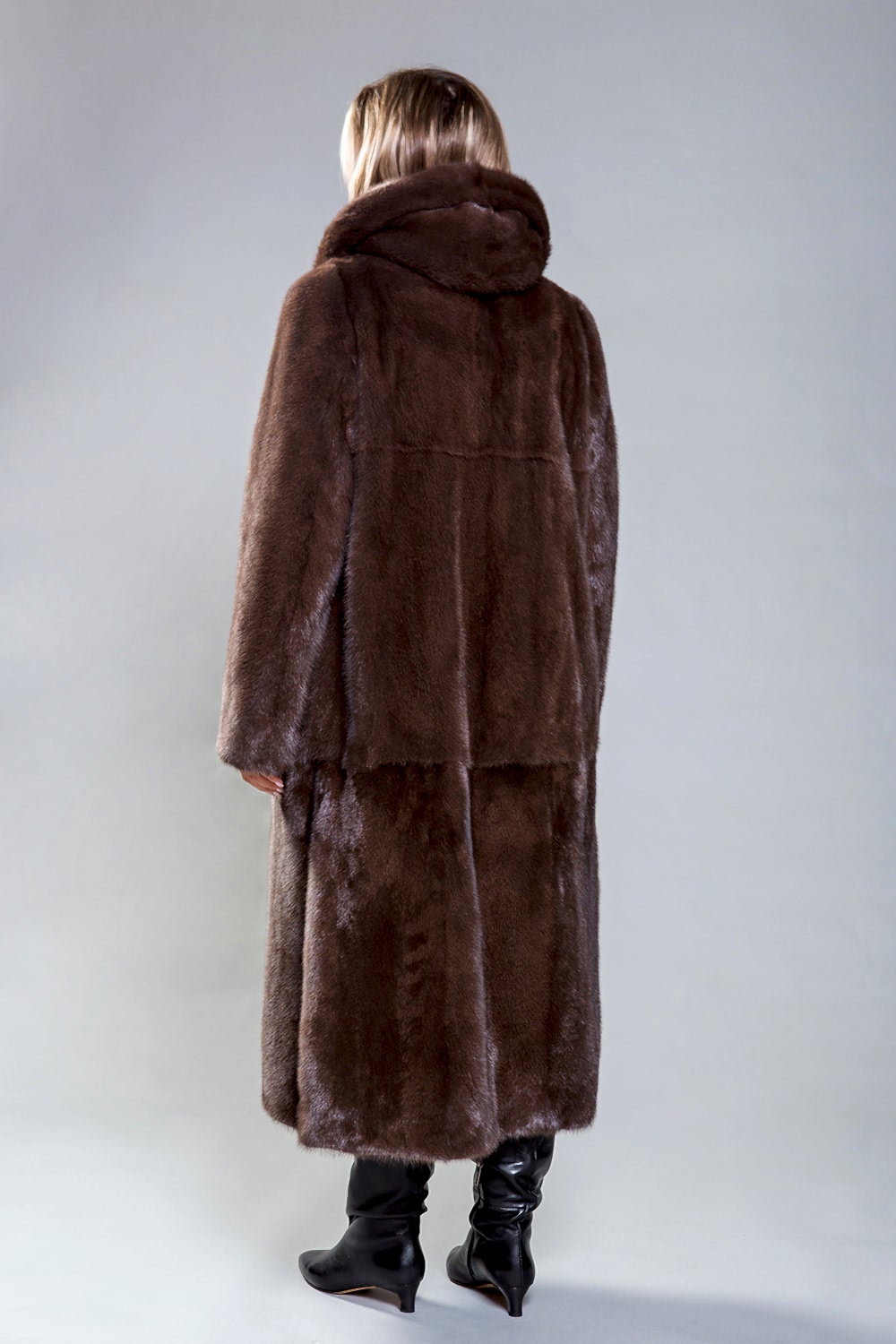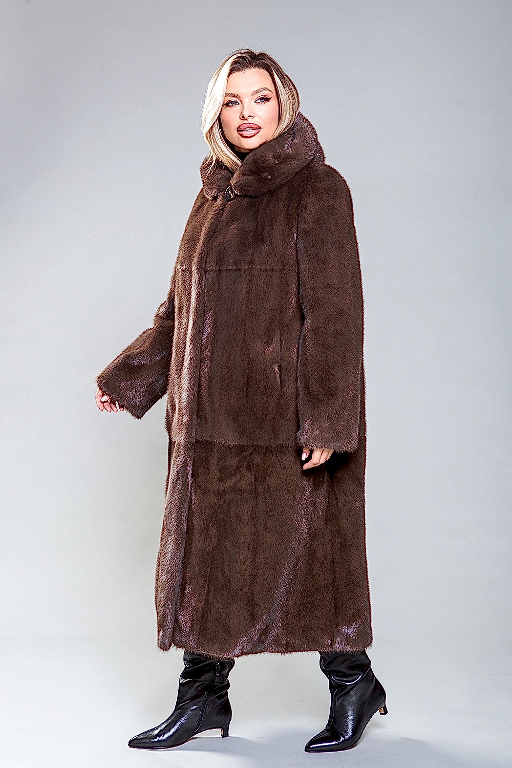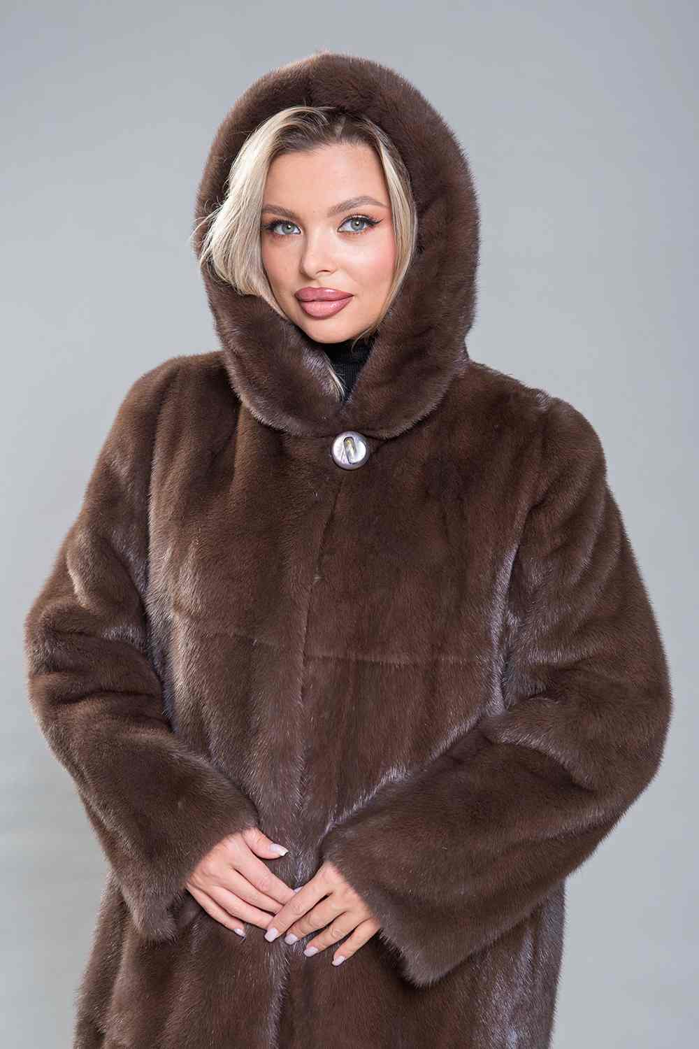 Норковое полупальто с капюшоном - элегантное изделие, выполненное из пластин с добавлением роспуска, что придаёт ему особый шарм. Модель оснащена регулируемыми утяжками, позволяющими идеально подогнать её к любому силуэту. Длина полупальто составляет 120 см, что делает его универсальным и удобным в носке. Классический крой шубы делает её идеальным выбором для любой Pin-Up Профессиональные стилисты утверждают, что такое меховое пальто не только не останется незамеченным, но и подчеркнёт вашу элегантность, добавив нотку роскоши в любой образ.