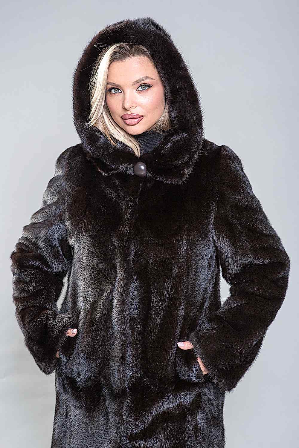 Норковое полупальто с капюшоном - это изысканное изделие, созданное из пластин с добавлением роспуска, что придаёт ему неповторимый шарм. Модель оснащена регулируемыми утяжками, которые позволяют идеально подогнать её к любому типу фигуры. Длина полупальто составляет 110 см, что делает его универсальным и удобным для повседневного использования. Классический крой шубы делает её отличным выбором для любой женщины, стремящейся выглядеть элегантно. Профессиональные стилисты уверены, что такое меховое изделие не только Pin-Up внимание, но и подчеркнёт ваш утончённый вкус, добавив нотку роскоши в любой образ.