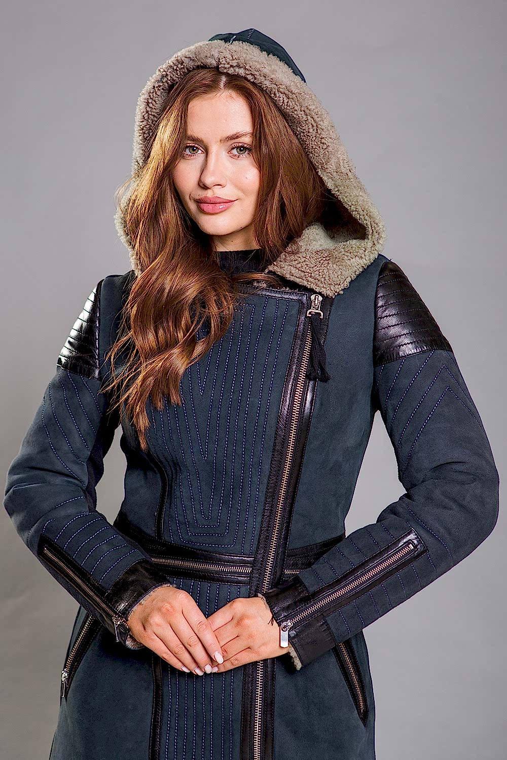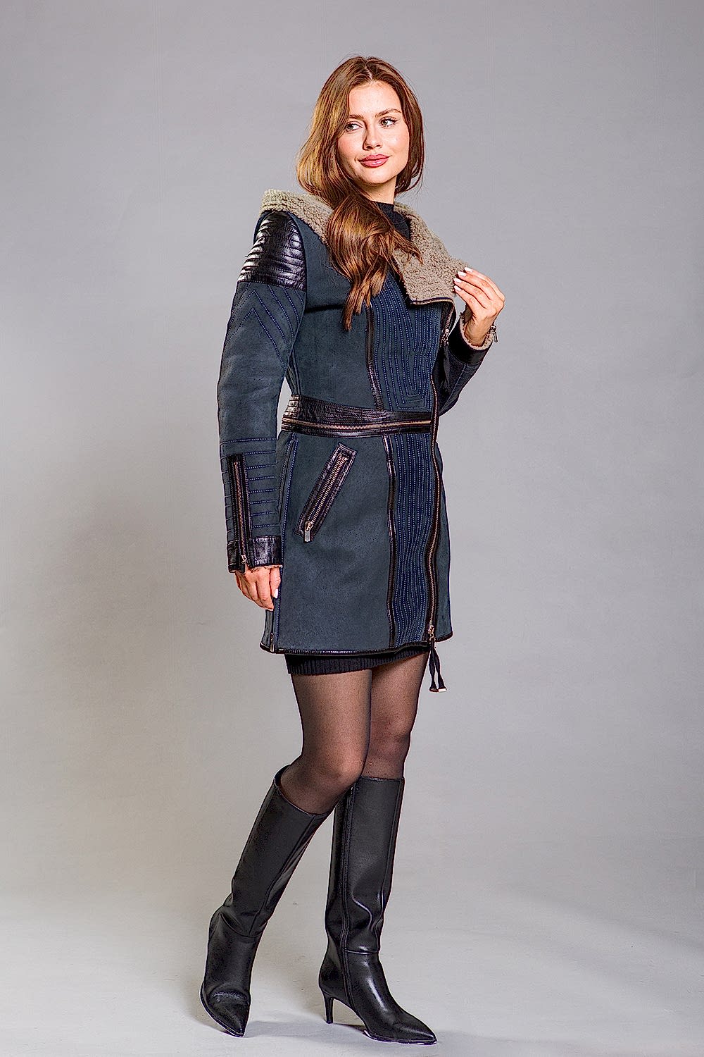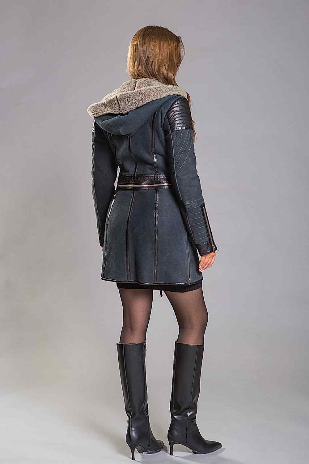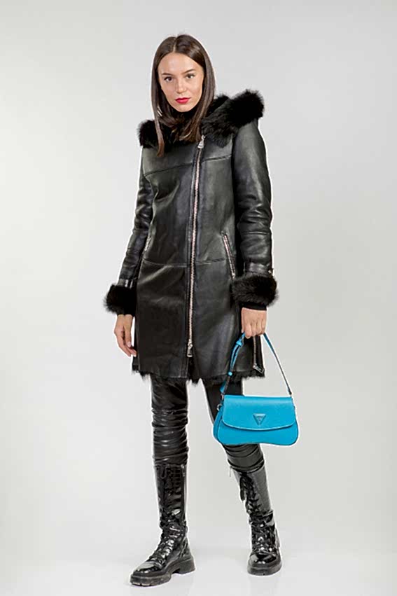Эта дубленка, изготовленная из овчины, имеет капюшон и приталенный Pin-Up Модель декорирована кожей и молниями, что делает её не только стильной, но и очень удобной. Прекрасная вещь для молодых и активных девушек, которые ценят комфорт и стиль!