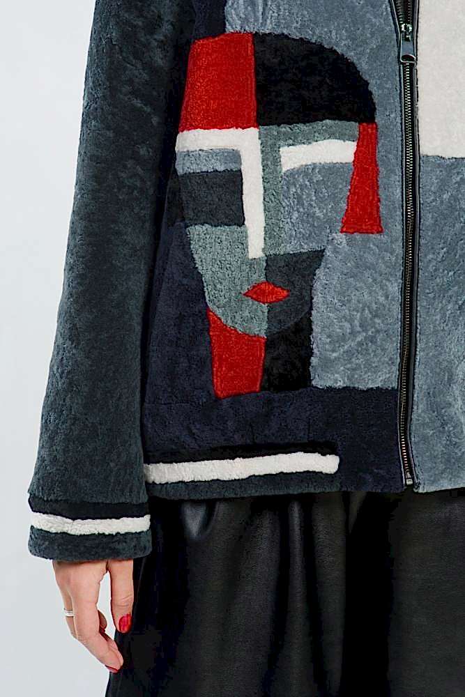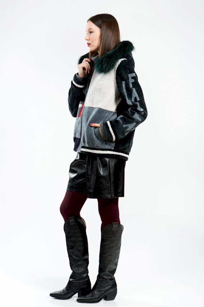 Куртка из меха овчины (астрагана). Капюшон модели дополнен мехом енота. Изделие декорирована разноцветными вставками и застегивается на молнию. Благодаря оригинальному дизайну и длине, такую курточку Pin-Up носить не только с брюками и джинсами, а и с юбочками и даже с утепленными шортами! Создайте для себя новый, комфортный и модный зимний образ!