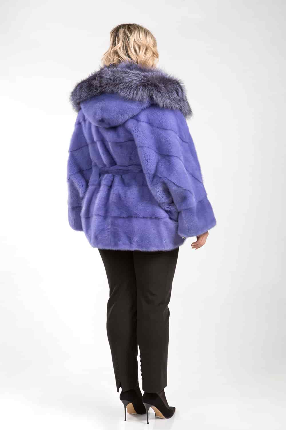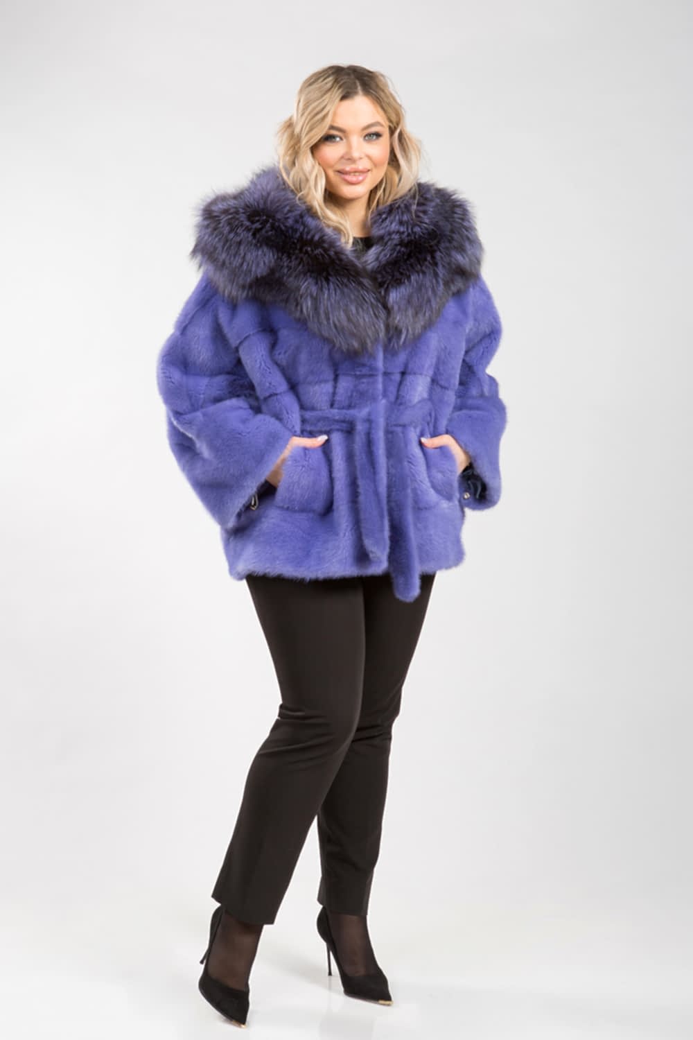 Курточка-пончо из меха норки. Капюшон модели декорирован мехом тонированной лисы. Крой изделия диагональная выкладка пластин. Рукава и низ курточки оснащены регулирующими утяжками. Длина изделия 80 см. Меховой пояс шубки продевается внутри изделия и тем самым придает Pin-Up оригинальность. А благодаря шикарной лисе шубка выглядит очень эффектно, добавляя в образ модели нотки шика и гламура!