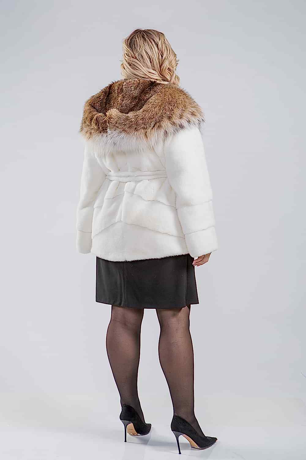 Роскошная Pin-Up курточка, декорированная мехом великолепной рыси, станет вашим незаменимым спутником в зимний сезон. Её крой выполнен в технике диагональной выкладки пластин, что придает изделию особый шик.