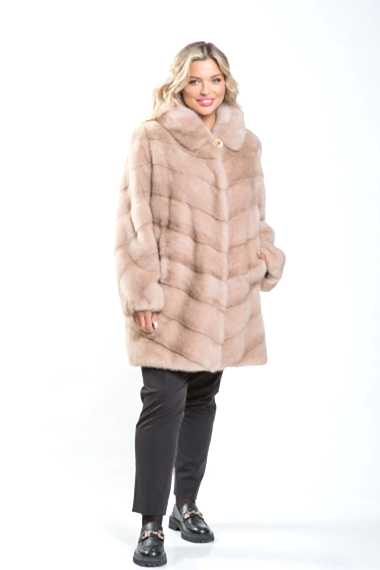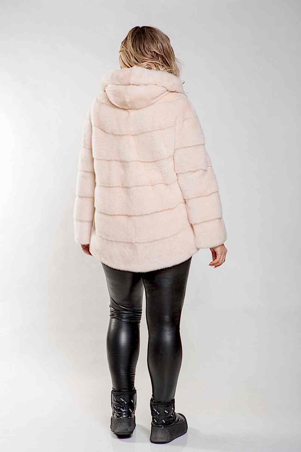 Эта куртка, выполненная из натурального меха норки, дополнена капюшоном. Её крой представляет собой диагональную выкладку пластин, что придаёт ей стильный и элегантный вид. На рукавах и на талии предусмотрены регулирующие утяжки, позволяющие идеально подогнать куртку по фигуре. Длина модели составляет 80 см. Эта куртка отличается лёгкостью и комфортом, что делает её идеальным выбором для водителей. Она не сковывает движения и отлично пропускает воздух, обеспечивая Pin-Up во время длительных поездок.