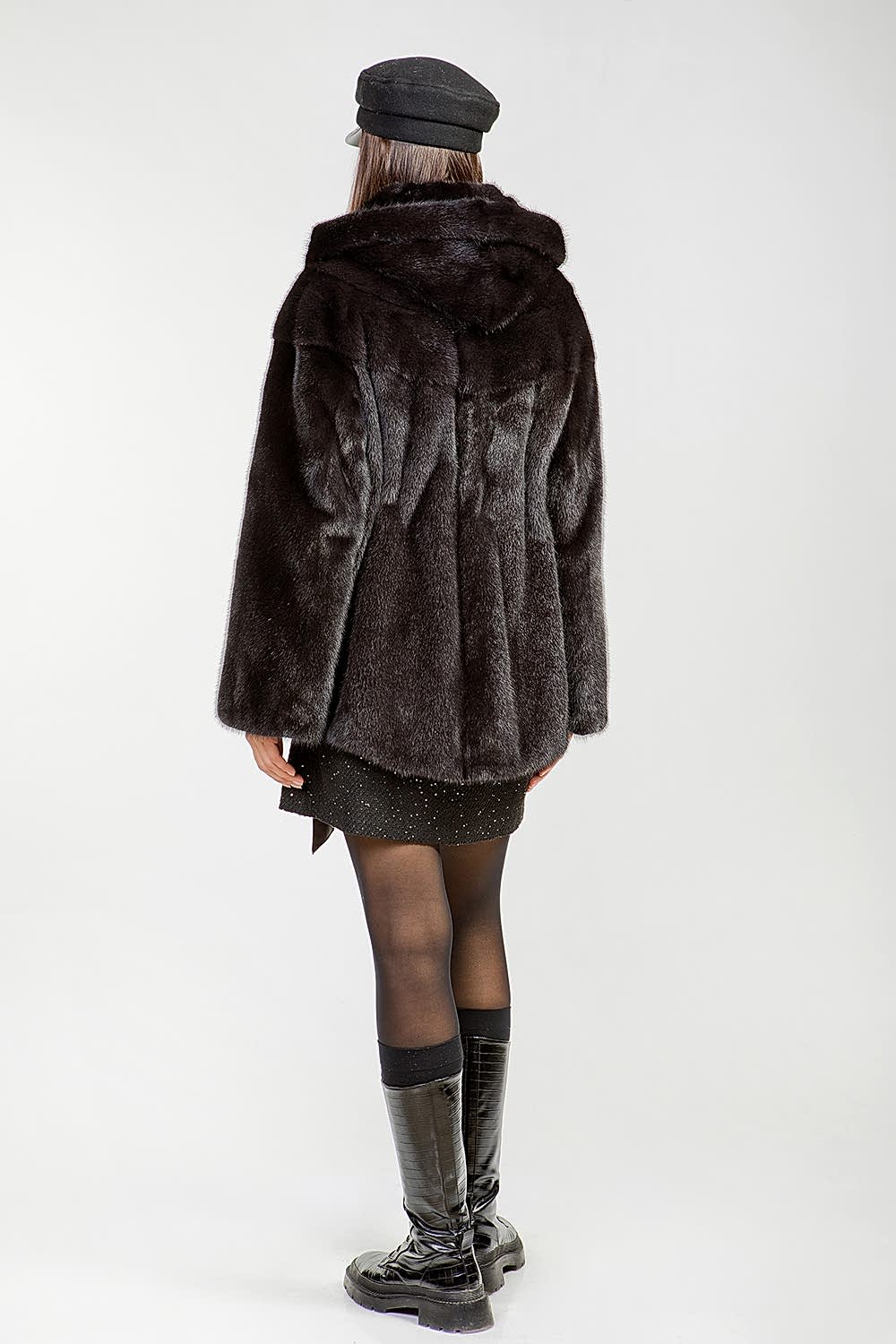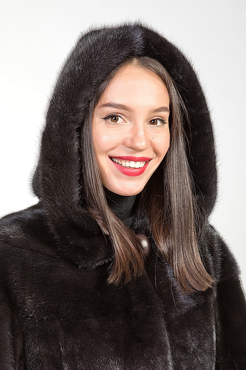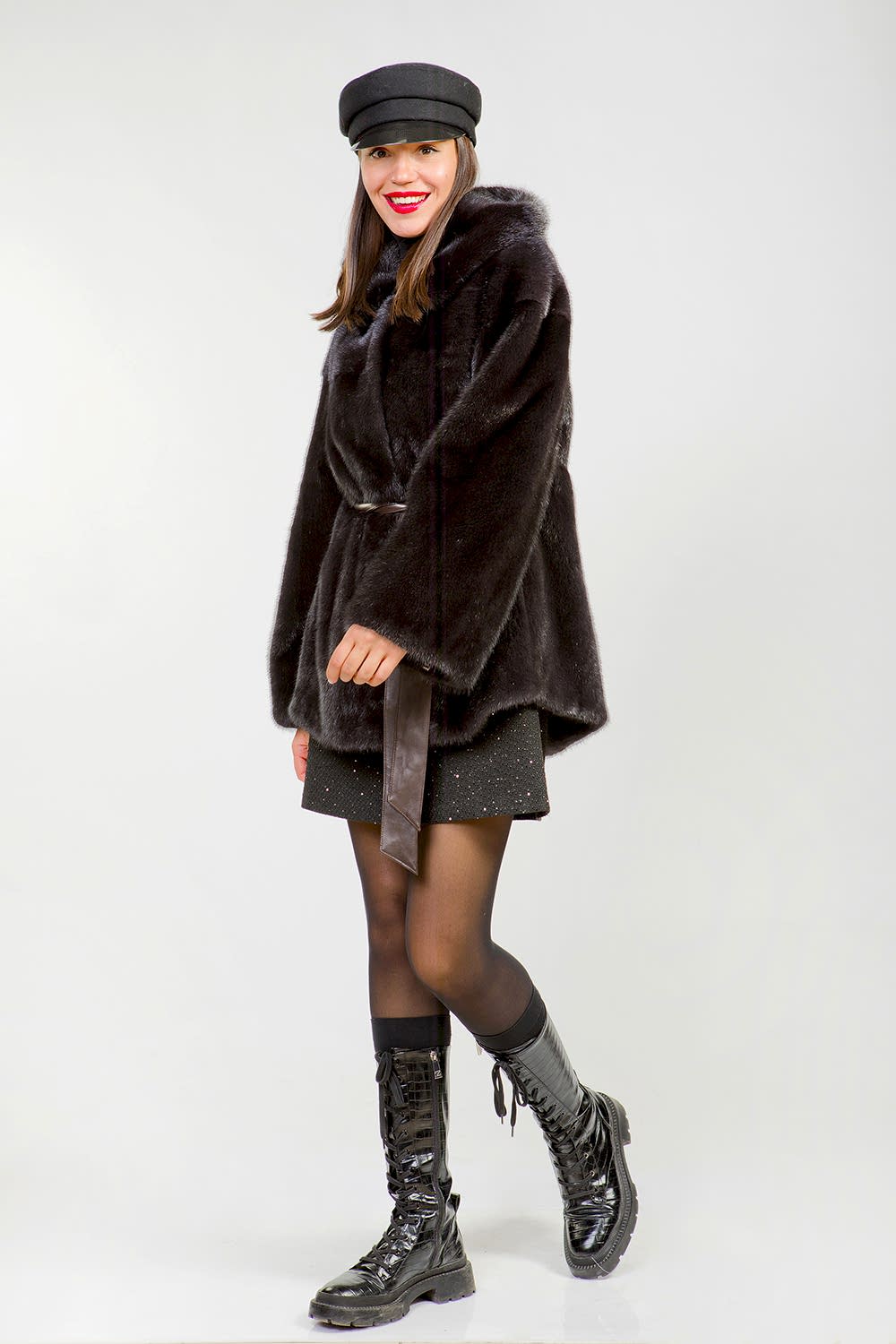 Куртка из меха норки с капюшоном. Крой изделия роспуск с добавлением пластин. Модель оснащена регулирующей утяжкой на рукавах. Кожаный пояс проходит внутри изделия, элегантно подчеркивает линию талии и вносит изюминку в образ. Длина Pin-Up 80 с