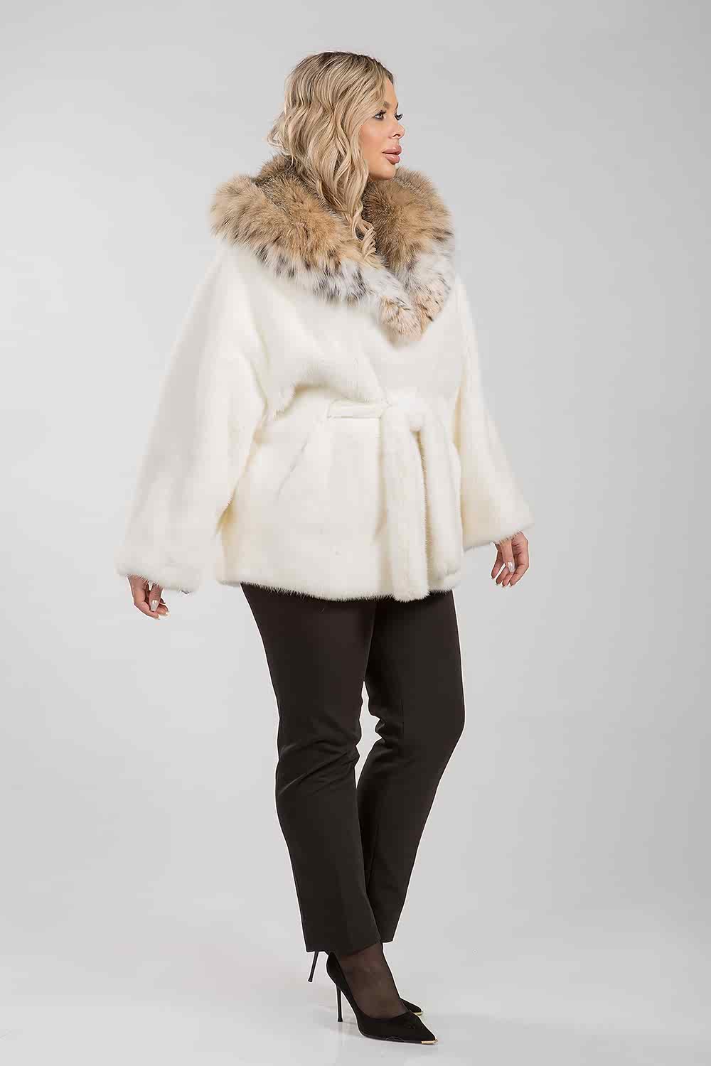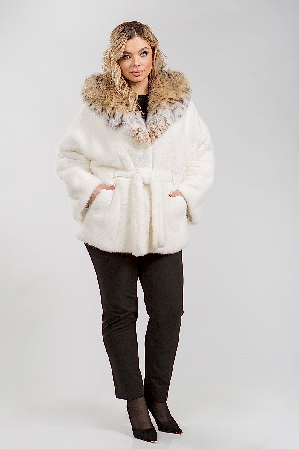 Курточка из меха норки. Капюшон модели декорирован мехом рыси. Крой изделия роспуск с добавлением пластин. На рукавах и по низу модели есть регулирующие утяжки. Длина изделия 77 см. Меховой пояс шубки продевается внутри изделия и тем самым придает курточке оригинальность. А благодаря шикарной рыси Pin-Up выглядит очень эффектно, добавляя в образ модели нотки шика и гламура!